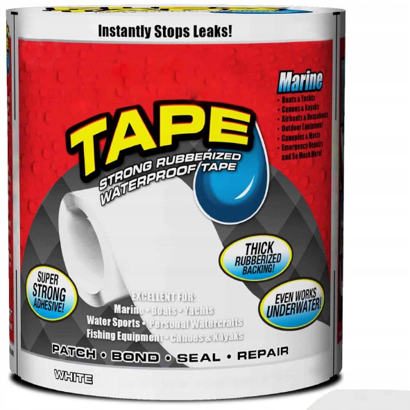 Скотч очень прочный, прорезиненный, >водонепроницаемая лента, устойчивая к ультрафиолетовому излучению, которая может склеивать, герметизировать и ремонтировать практически все! p>