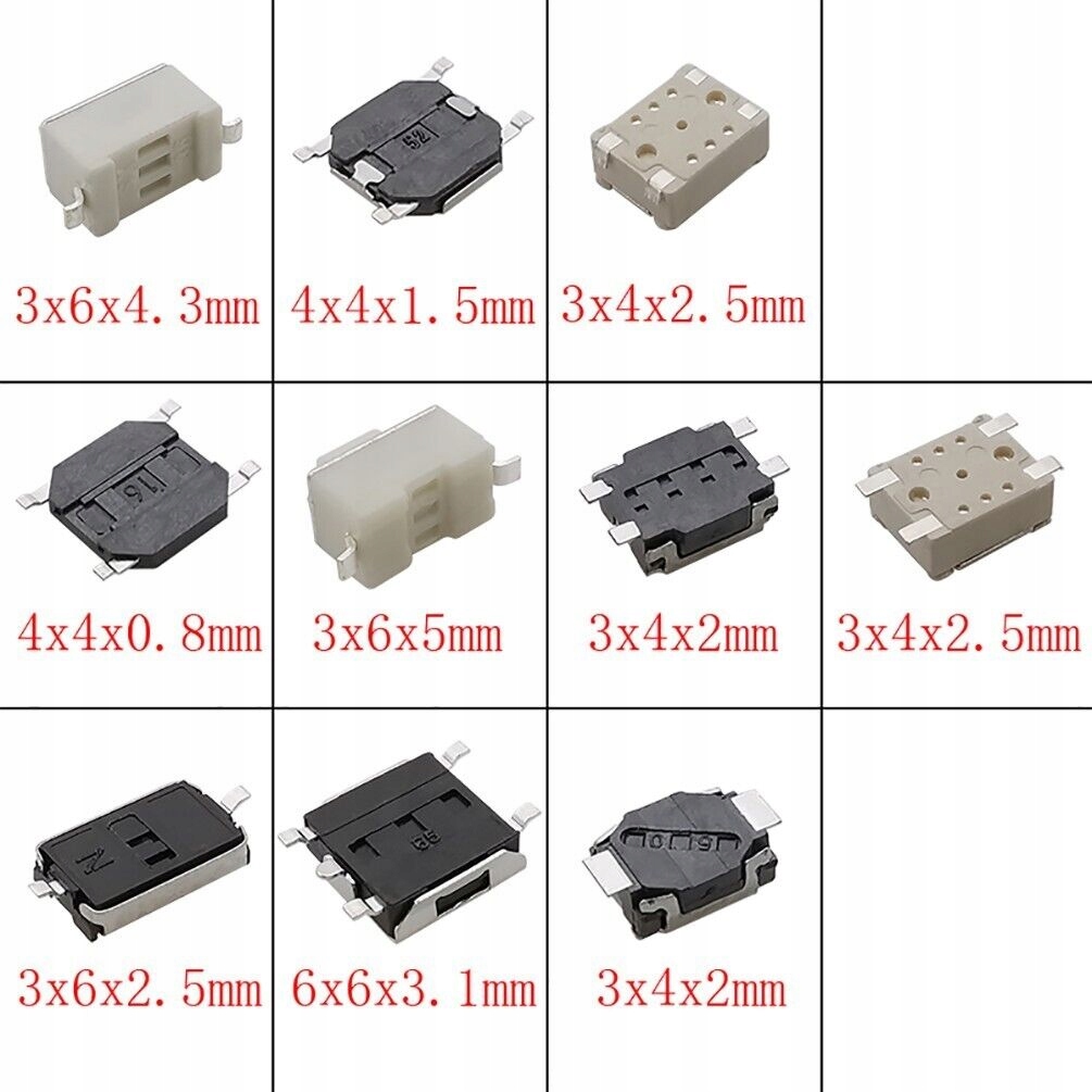 НАБОР МИКРОПЕРЕКЛЮЧАТЕЛЕЙ SMD MICRO SWITCH/THROUGH - 10 МОДЕЛЕЙ