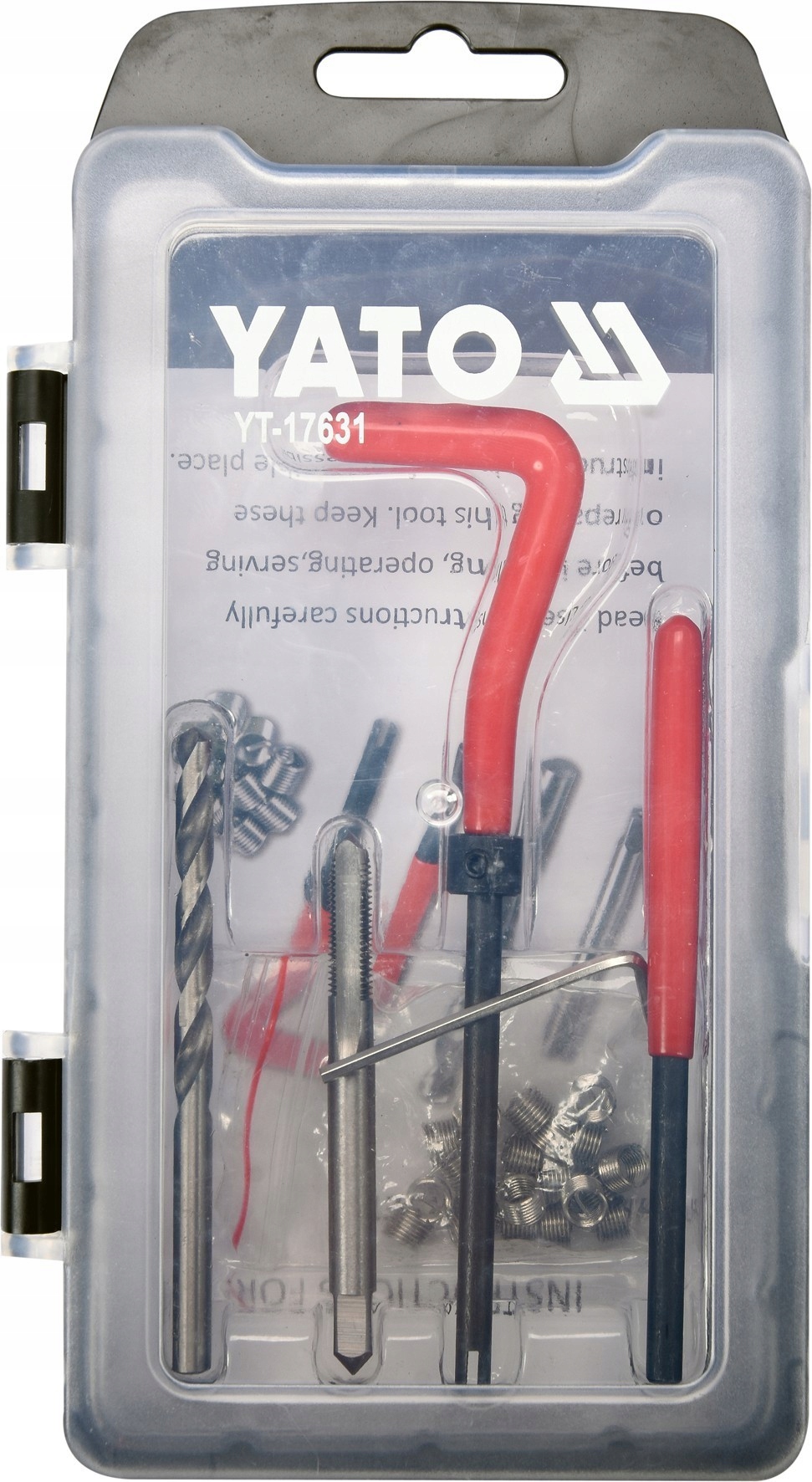 - включает сверло из быстрорежущей стали, метчик из быстрорежущей стали, ручку и пробойник, а также специальные пружины для ремонта резьбы.
