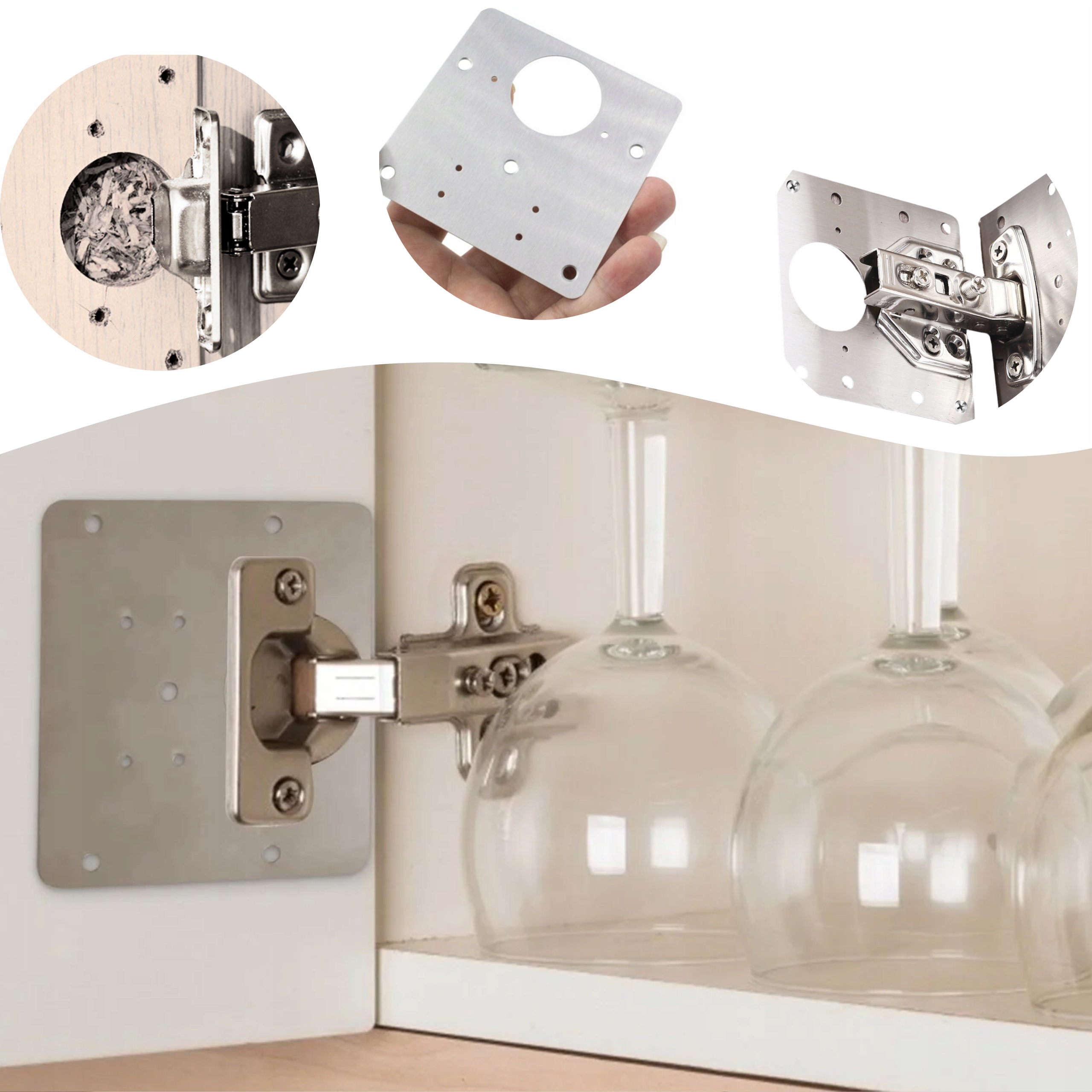 - Универсальна и совместима с большинством стандартных мебельных петель.