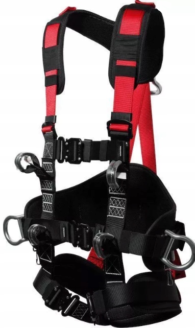 - 5 точек крепления: - 1 сзади для страховочная, 1 передняя (грудная) состоит из 2 страховочных петель, 2 боковых позиционирующих петель и 1 брюшной, соединенной с 2 петлями, предназначенными для работы на веревке.