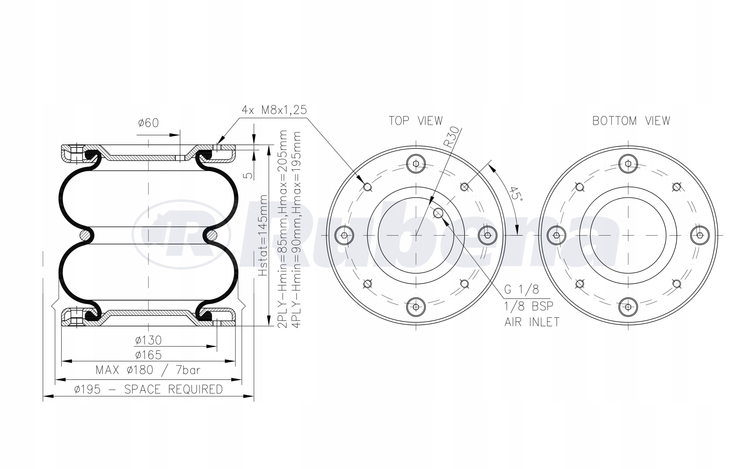 ✅ 2 x пневматическая пневматическая подушка 170x2 с клапанами ( мембрана Рубена )