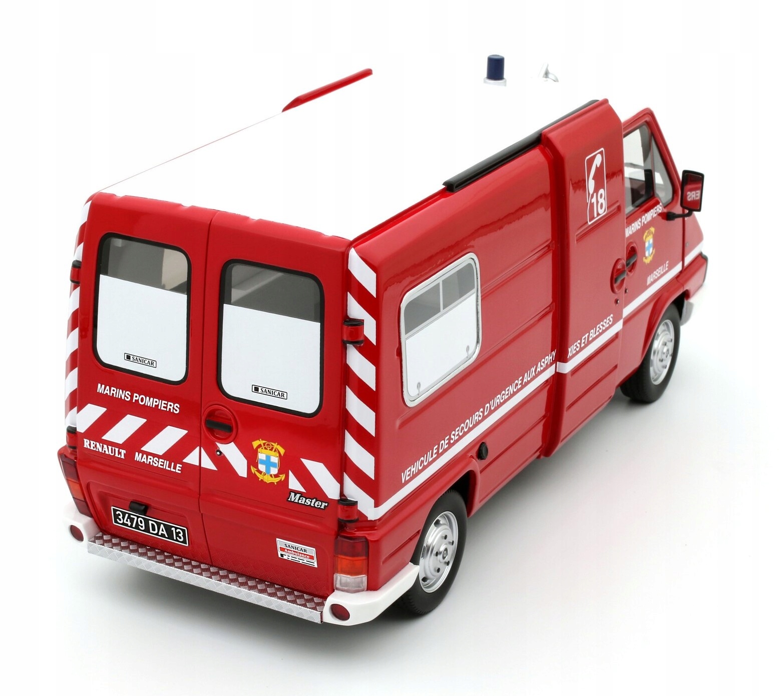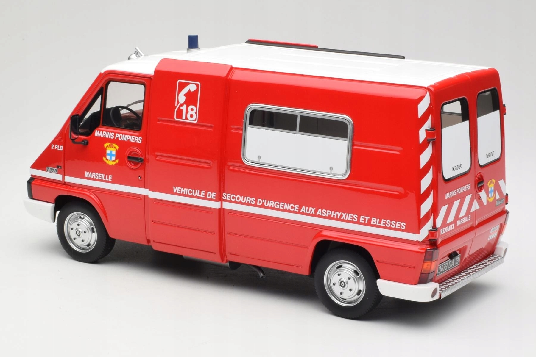 Коллекционная модель автомобиля Renault Master T30 D T30D VSAB Pompiers Fire Department Marseille 1980 года в масштабе 1/18, производства Otto Mobile / OttOmobile