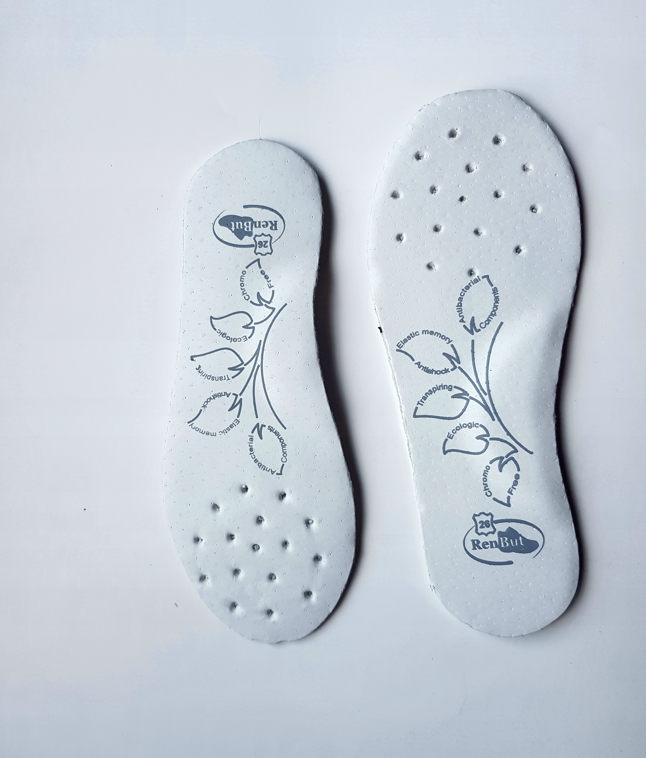 • Стелька имеет отверстия в коже, через которые проходит воздух.