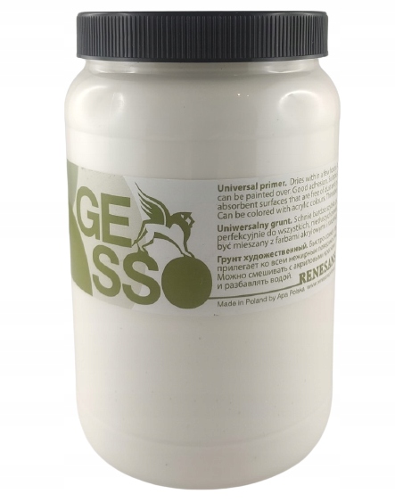 Грунты GESSO — очень популярные и ценные грунтовки для покраски. После высыхания левкас становится матовым и пористым, что увеличивает адгезию красок.
