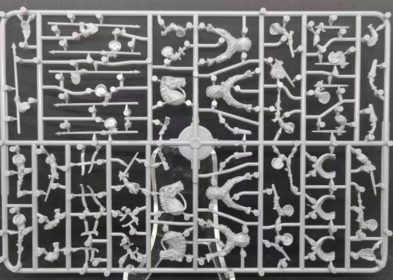 Этот твердый пластиковый набор позволяет создать максимум 12 гонщиков, оснащенных мечом, пистолетом с замком, пистолетом с замком колеса и копья. Дополнительные элементы брони для лошадей прикреплены (или лошади можно использовать как обычные с прикрепленными седлами). Смесь типов шляп и шлемов расширит их использование на полях сражений в Европе в 15 и 16 веках и в 17 веке. Коробка дополняется 8 боевыми собаками.