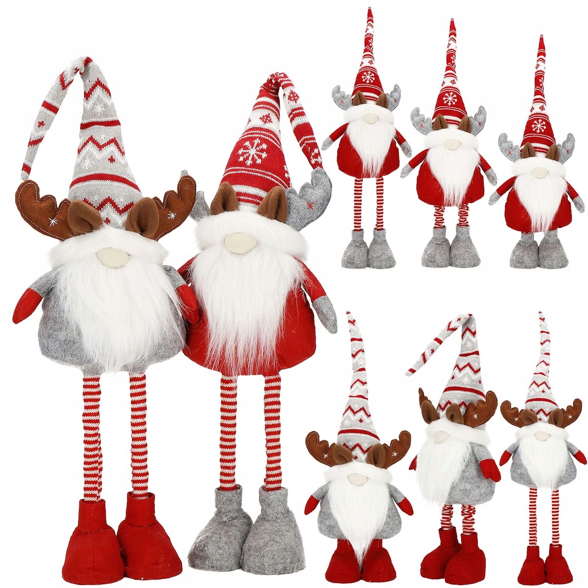 Большим преимуществом этих эльфов являются их телескопические ноги - благодаря их высоту можно регулировать Деды Морозы в шапках под свои предпочтения!