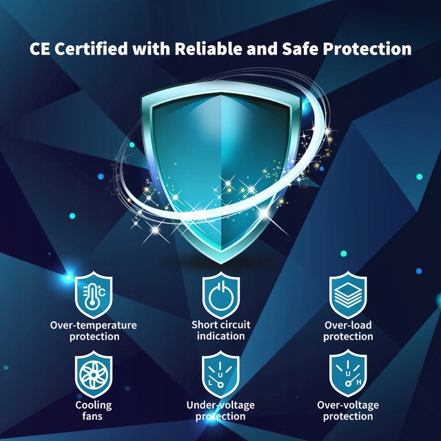 - Устройство имеет защиту от E.G. Перегрев или чрезмерное напряжение, которое обеспечивает безопасное использование инвертора