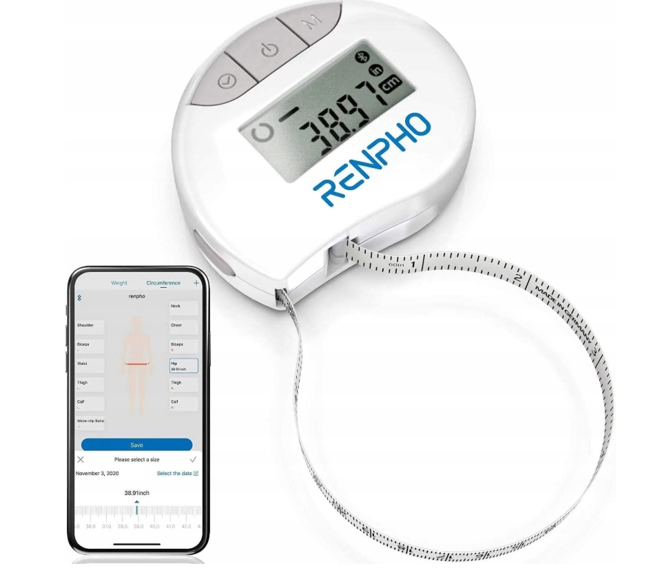 Электронный измеритель RENPHO RF-BMF01-WH — это современный инструмент для точного измерения тела, включая окружность бицепсов, талии, бедер и других групп мышц. Оснащенный Bluetooth-соединением, он позволяет синхронизировать результаты с мобильным приложением, которое позволяет отслеживать прогресс тренировок и изменения фигуры в режиме реального времени. Благодаря длине 1,5 м его удобно использовать как дома, так и в спортзале.
