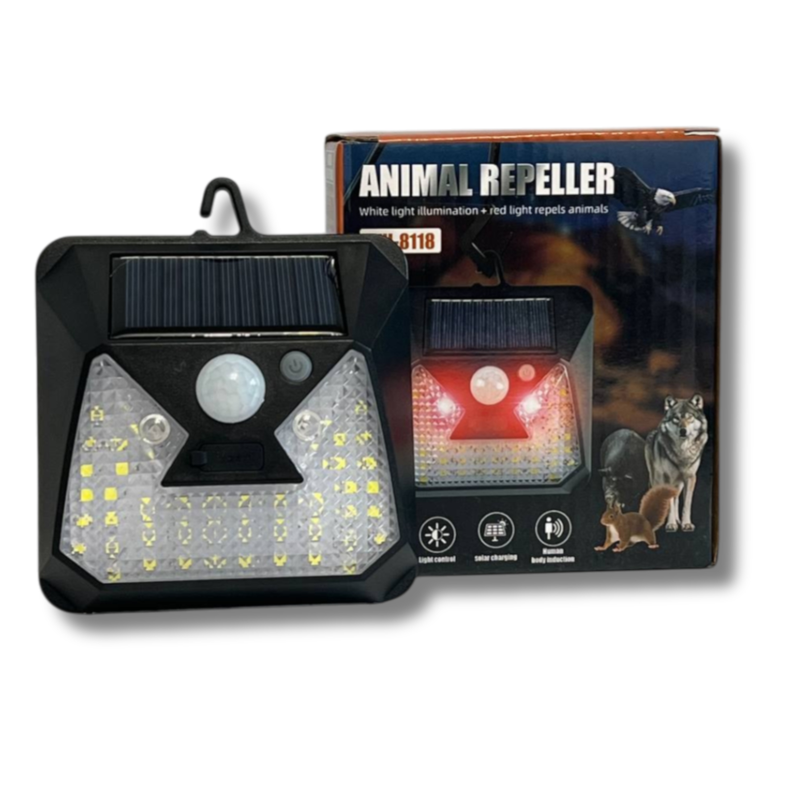 интенсивный светодиодный свет: красные светодиоды, имитирующие глаза хищника, эффективно сдерживают птиц, грызунов и более крупных животных, таких как кошки или мартенс.