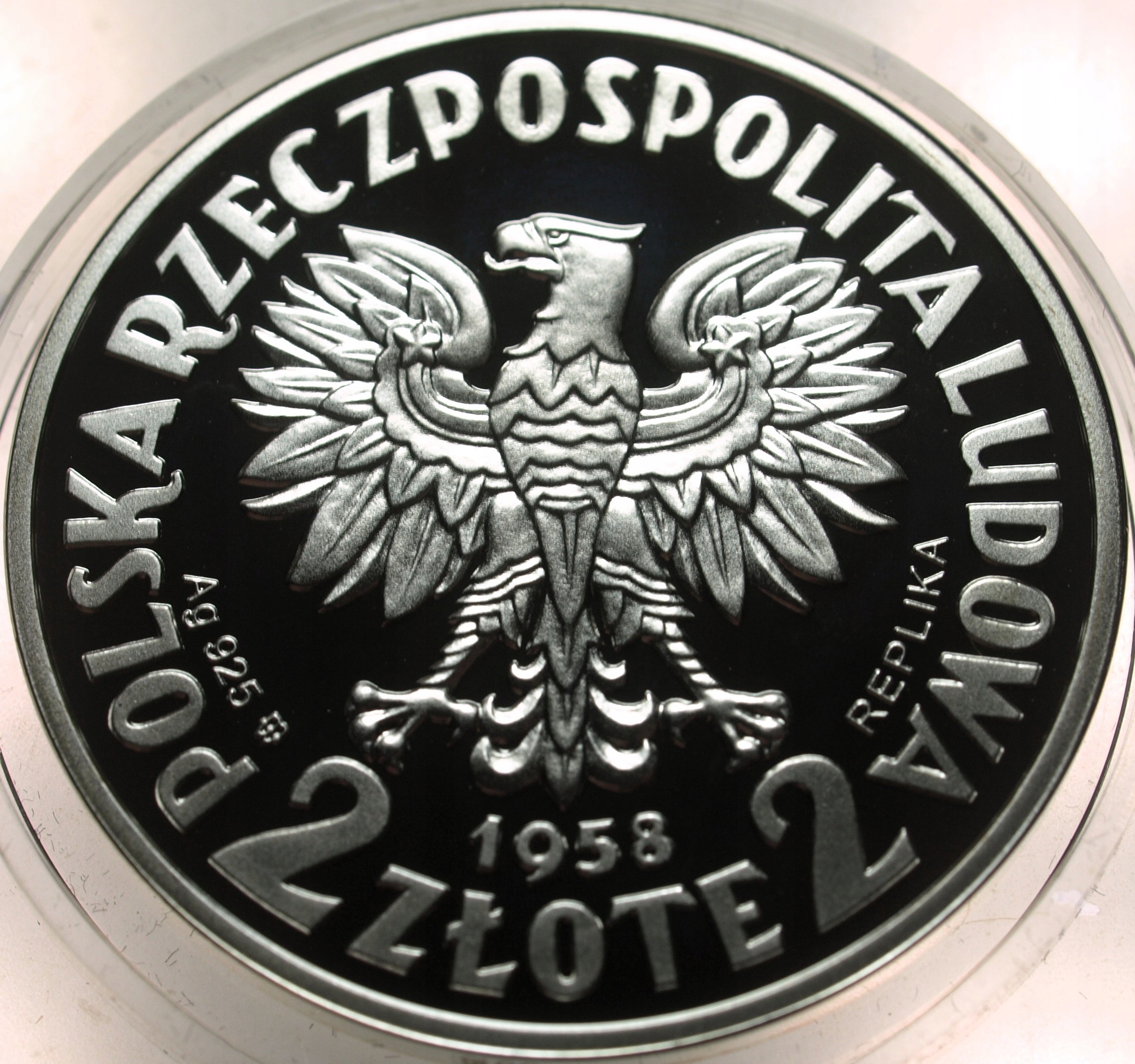 РЕПЛИКА 2 ЗЛОТЫХ 1958 ГОДА Лось Минтница, СЕРЕБРЯНЫЙ КОРПУС