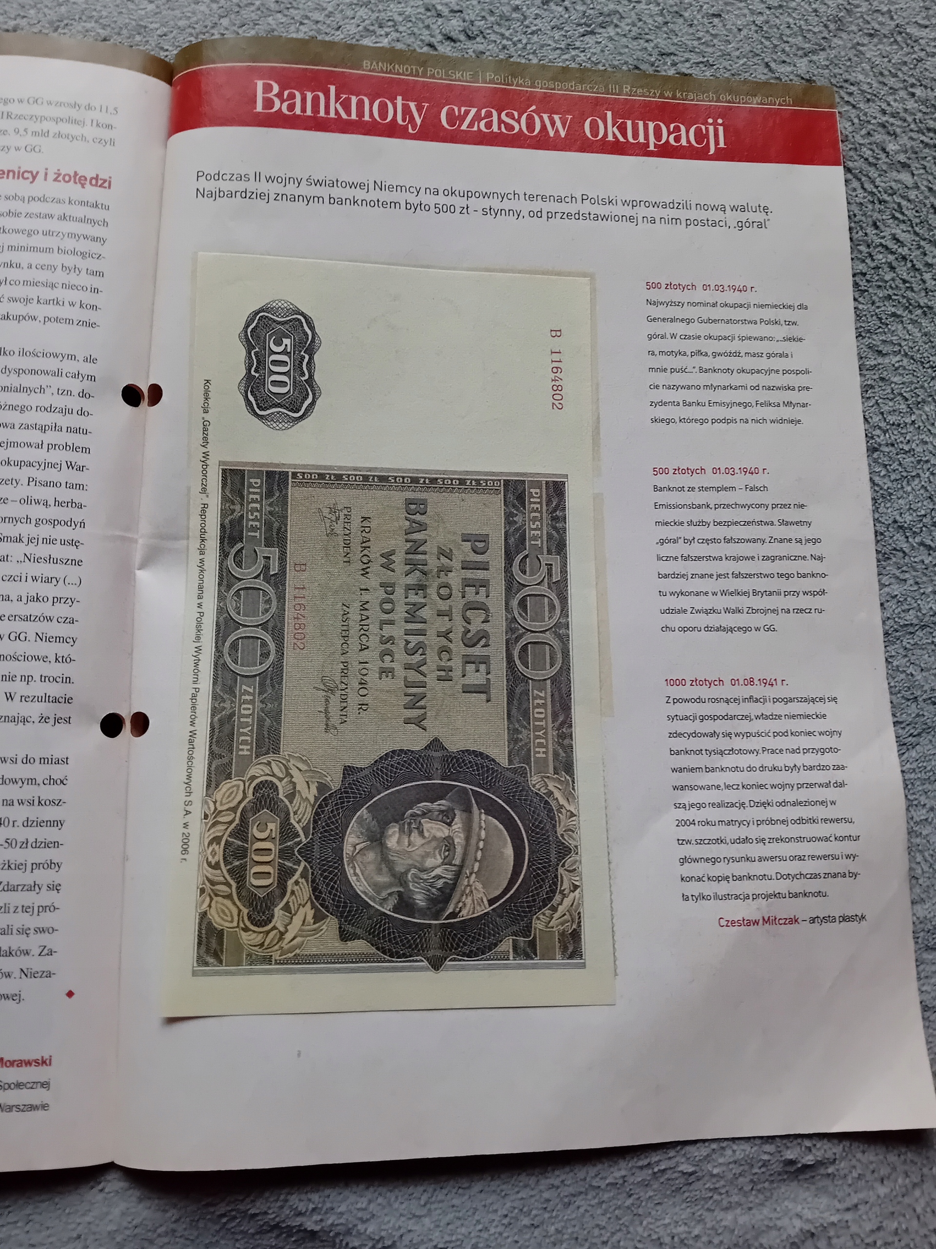 Реплика банкноты номиналом 500 злотых Гураль 1940 г. + информационная брошюра GW, 2006 г.