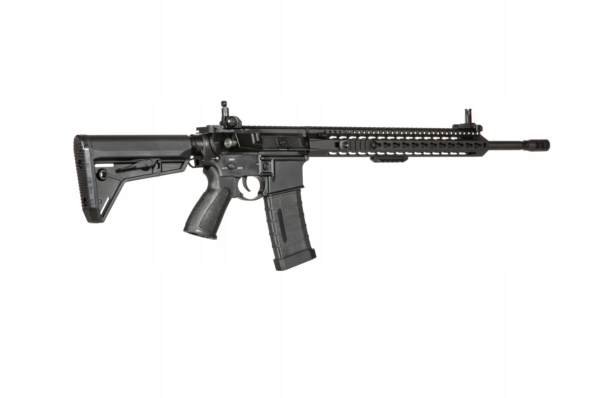 Модель оснащена множеством функций, улучшающих эргономику реплики, в том числе закругленной спусковой скобой и увеличенной пистолетная рукоятка. В комплект входят три направляющие Keymod и угловая рукоятка RIS.
