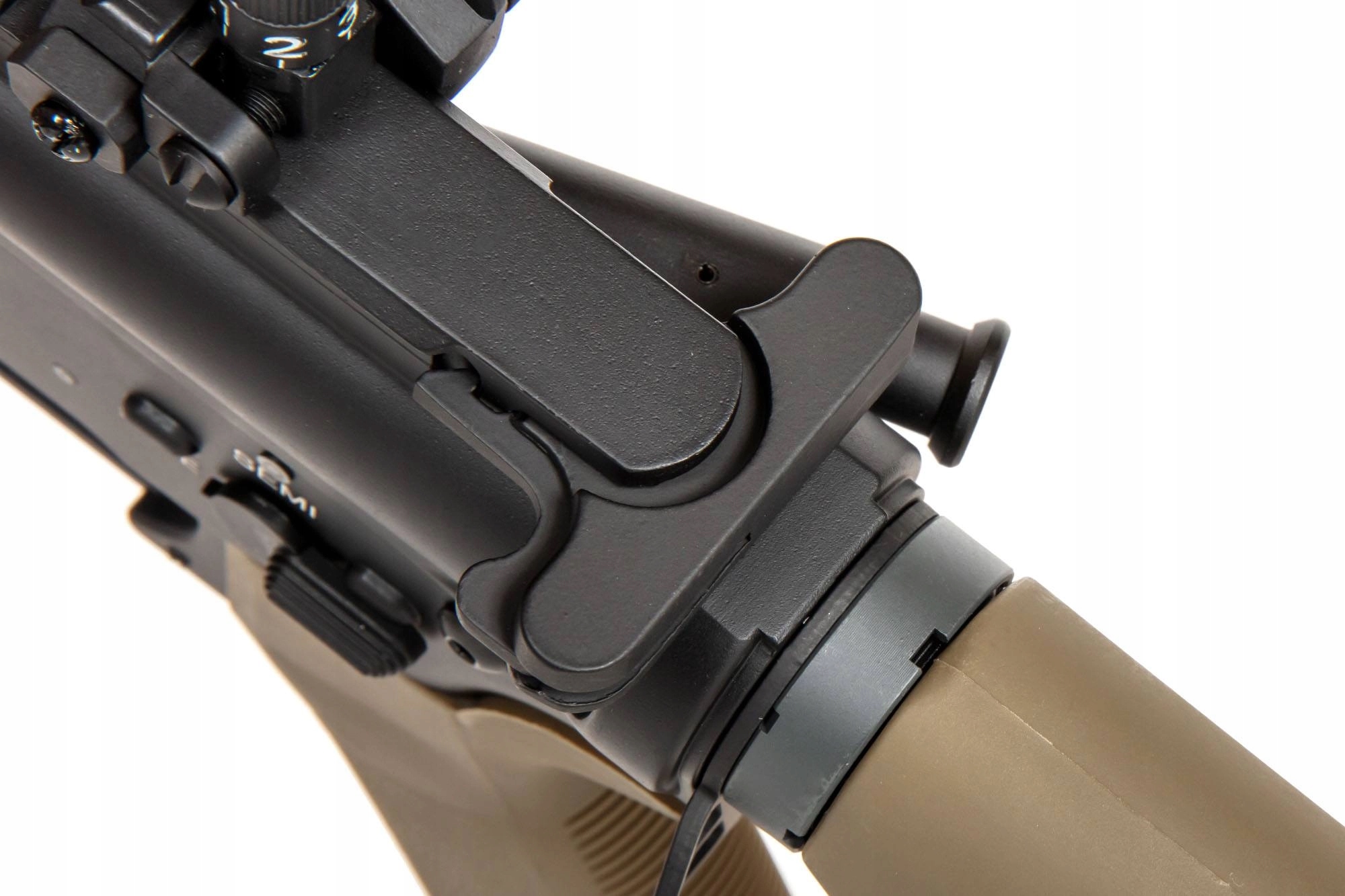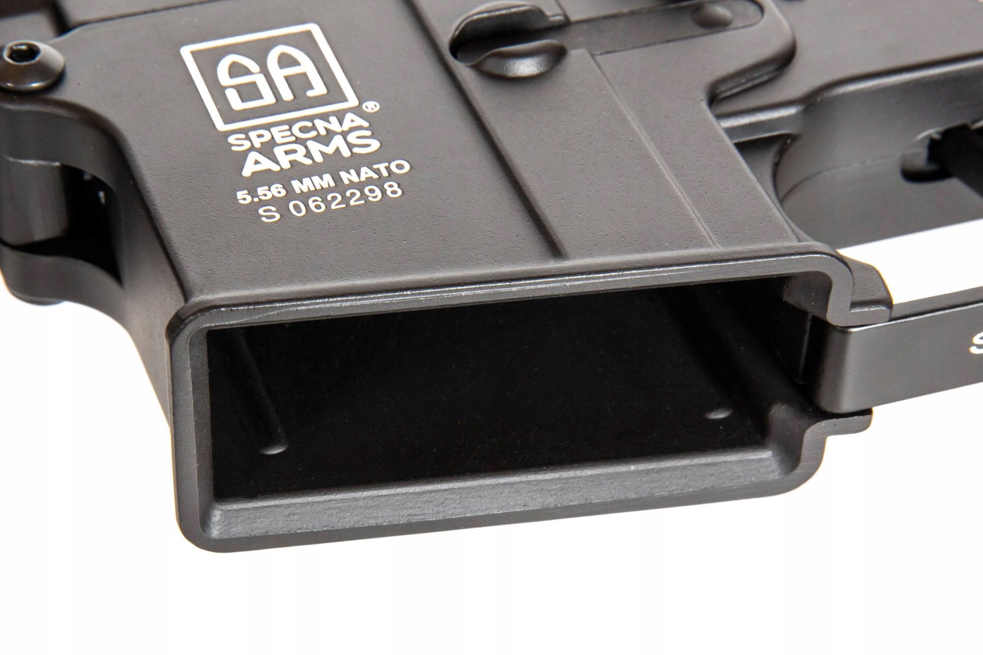 Реплика карабина SA-A03-M компании Specna Arms изготовлена преимущественно из единого сплава цинка и алюминия, с использованием стальных элементов в наиболее ответственных точках реплики (все винты, штифты и рукоятка тактического подвеса). изготовлены из стали). Приклад и пистолетная рукоятка изготовлены из полимерного пластика. Корпус реплики и направляющая RIS в сборе подверглись процессу анодирования, что гарантирует высокую степень защиты реплики от коррозии. Покраска самой реплики производилась методом напыления после пескоструйной обработки поверхности. Это гарантирует, что нанесенная краска будет гораздо более устойчивой к истиранию, чем обычная.