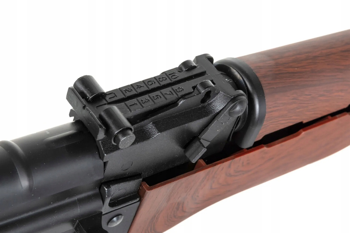 Корпус реплик изготовлен из прочного полимера, армированного нейлоновым волокном, что обеспечивает легкость, эргономичность и долговечность конструкции. Такое решение делает винтовку комфортной во время длительных игр и при этом сохраняет высокую устойчивость к механическим повреждениям. Наиболее открытые элементы, такие как крепление ствола, макетная затворная рама, основание целика и мушка, изготовлены из цинк-алюминиевого сплава, а такие элементы, как крышка ствольной коробки, предохранительная створка и спусковая скоба, - из стали, что дополнительно усиливает ключевые точки конструкции.