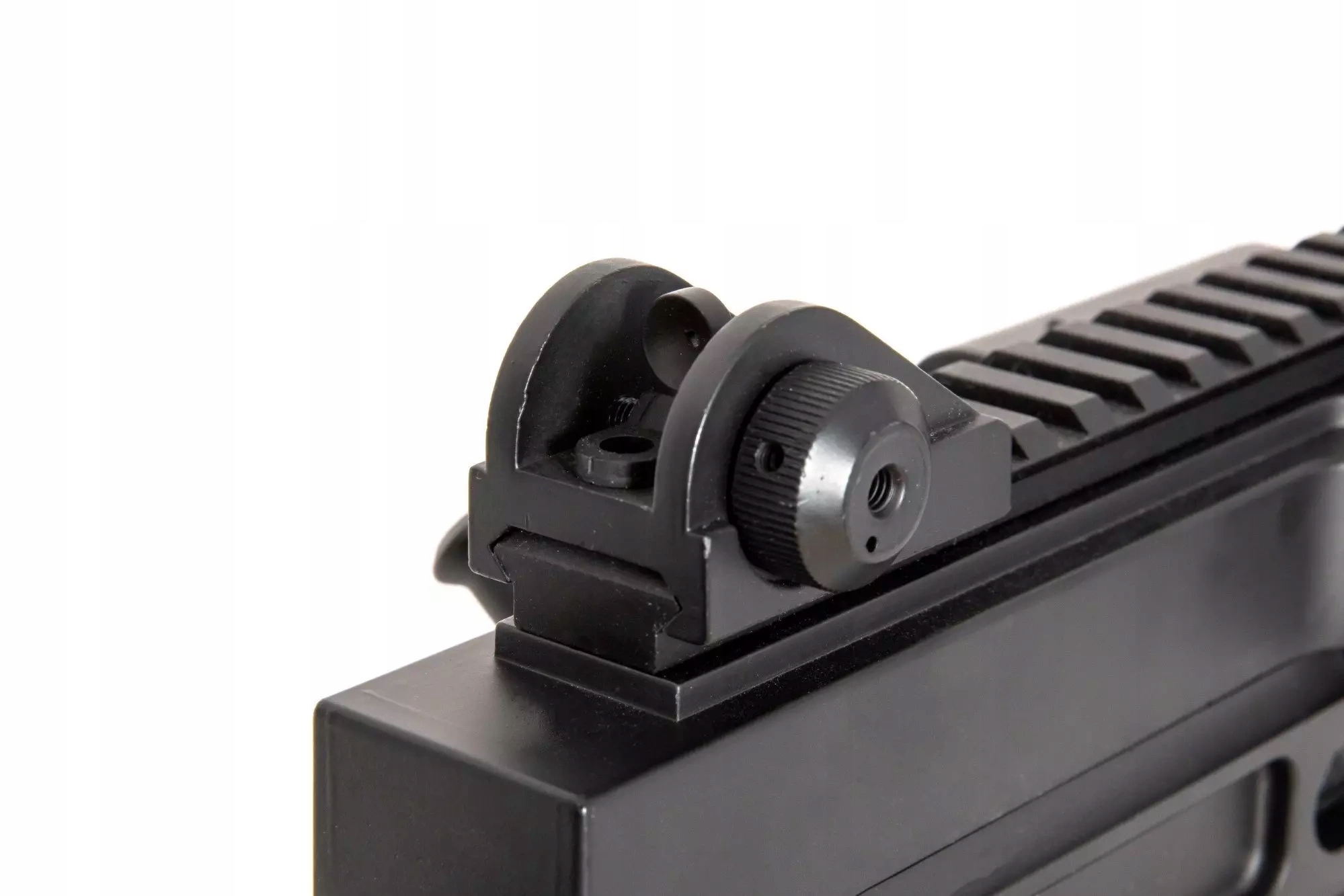 Реплика имеет фиксированные регулируемые прицельные приспособления и направляющие RIS/Keymod, позволяющие устанавливать различные типы тактических аксессуаров.
