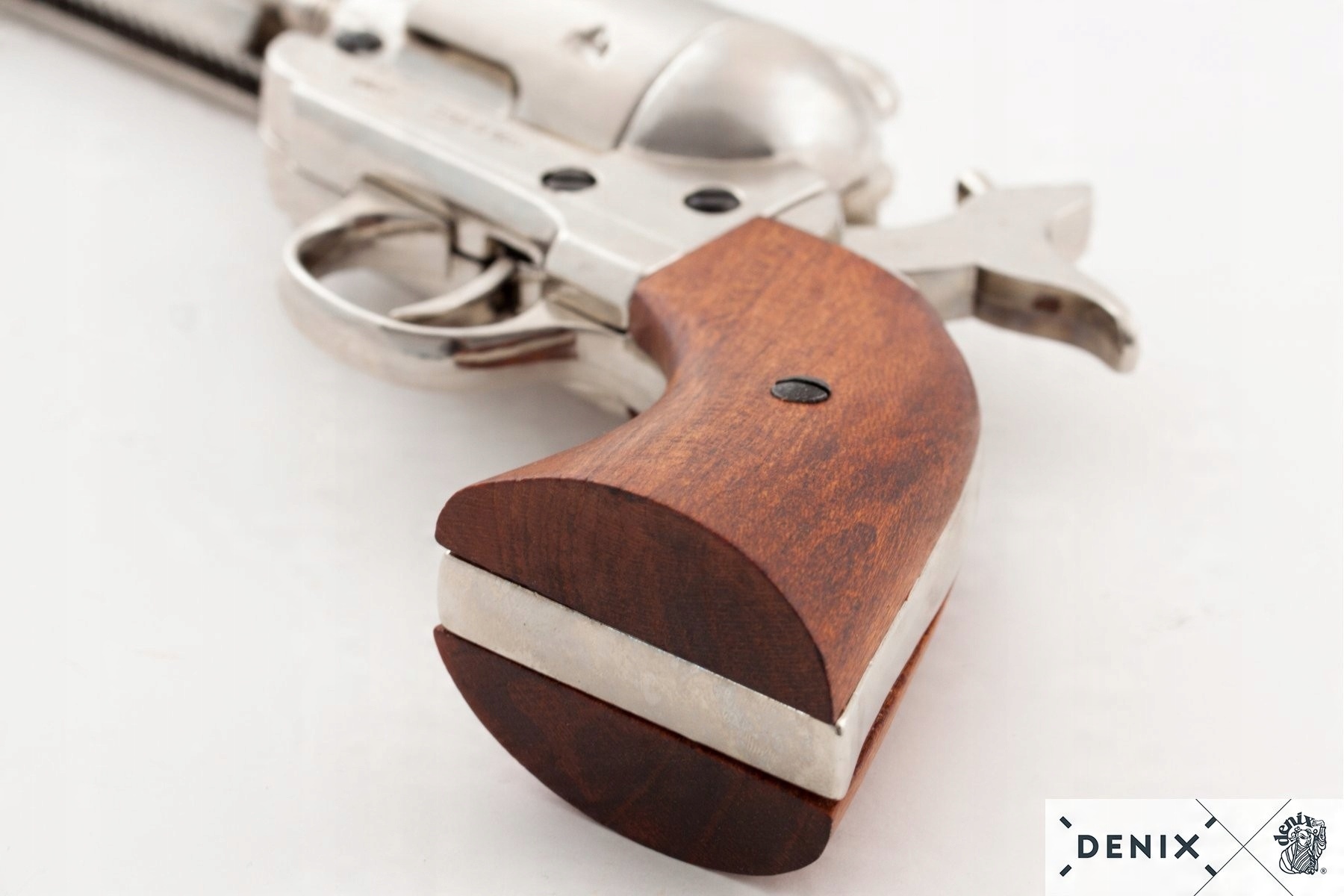 Идеальная копия револьвера NA TABLO PEACESAKER от S.COLT 1873 года, США. Изготовлен из ZnAl, ручка покрыта мореным деревом. Возможность пожертвовать так называемую сухой выстрел. Кольт имеет вращающийся барабан с шестью патронниками. Барабан можно поворачивать непосредственно путем перевода крана в полувзведенное положение или же он поворачивается автоматически механизмом при взводе крана в полное положение. В реплике задняя подпорная стенка с одной стороны оснащена крышкой барабана, которая открывается вниз, обеспечивая возможность погрузки и разгрузки. Под стволом находится рабочий стержень-разгрузчик - гильзосъемник, проходящий через каморы барабана.