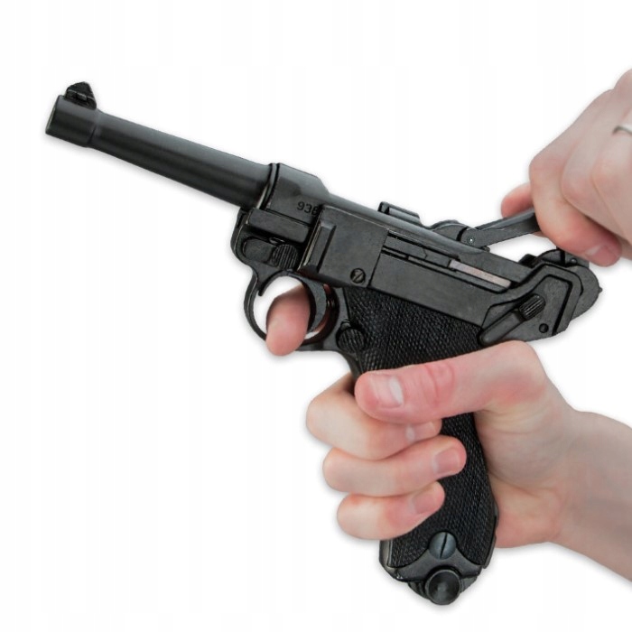 Точная копия служебного пистолета немецкой армии, знаменитого P 08, разработанного Георгом Люгером. Этот пистолет создан как развитие пистолета С93 конструкции Хьюго Борхардта (первый пистолет, оснащенный сменным магазином в рукоятке)