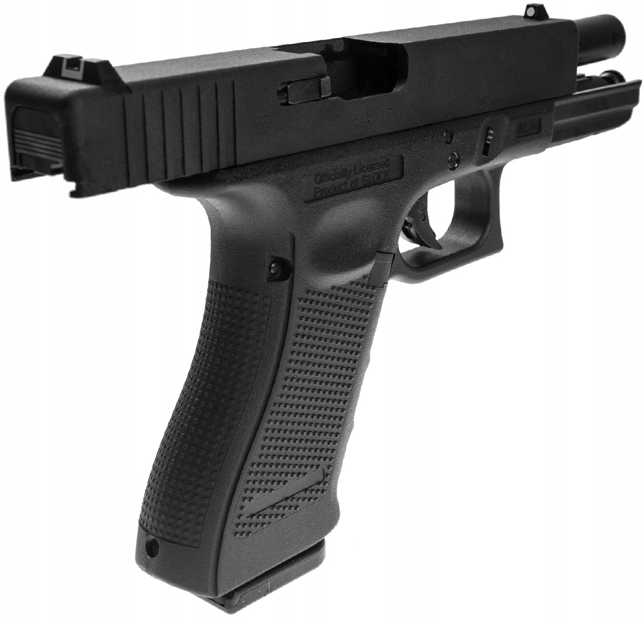 Газовая копия самого популярного в мире пистолета Glock 17 gen.4. Он изготовлен из металла и пластика. Корпус пистолета изготовлен из пластика, а замок, внешний ствол и магазин — из металла. Пистолет и магазин имеют маркировку лицензионного производителяGlock.