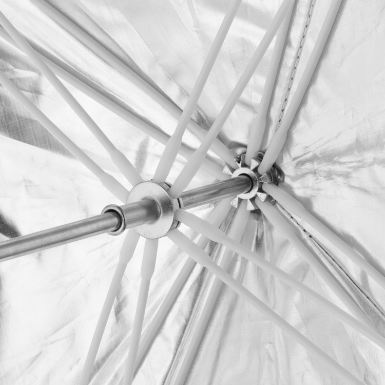 Каркас софтбокса изготовлен из прочных и гибких прутьев, а материал, из которого изготовлен чехол, устойчив к истиранию. . Внутренняя часть крышки покрыта серебристым светоотражающим слоем, который равномерно отражает свет в сторону рассеивателя.