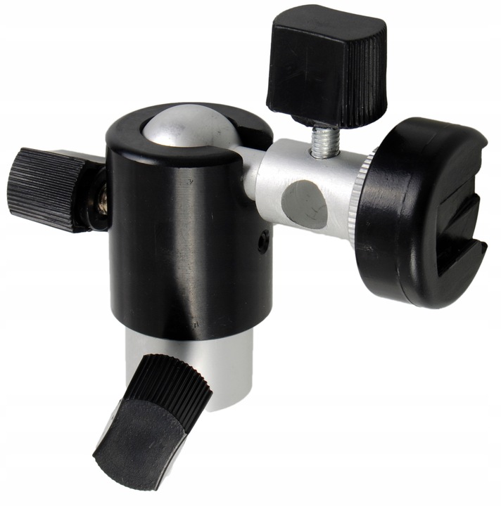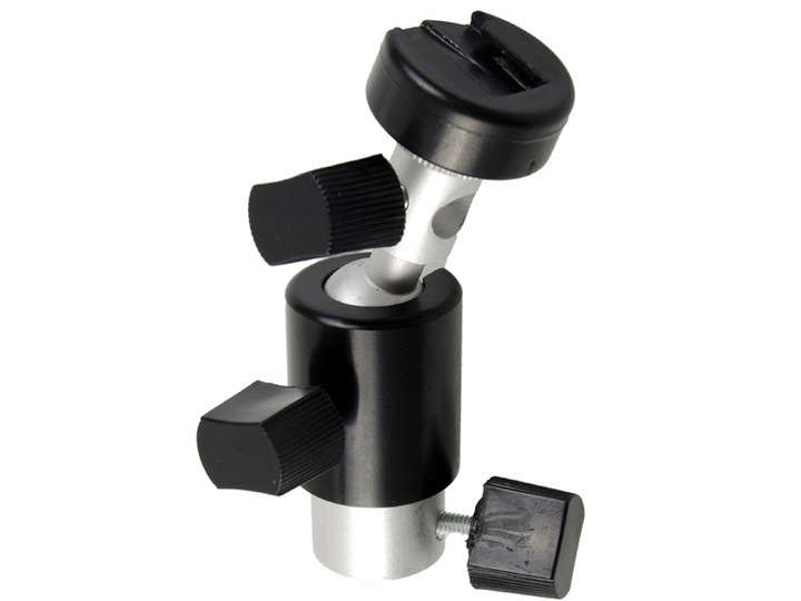 Держатель позволяет разместить фотовспышку или фотоаппарат на осветительной стойке с фотозонтиком - имеет штифт и резьбовое крепление. Это шариковый держатель с широким диапазоном регулировок, обеспечивающий высокий комфорт работы.