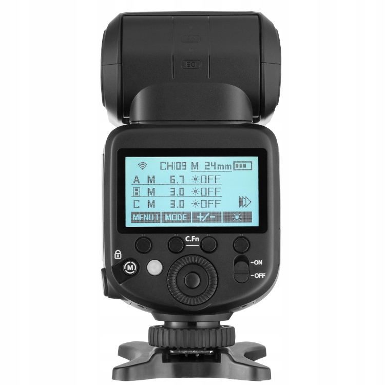 Устройство питается от литий-ионного аккумулятора напряжением 7,4 В и емкостью 2500 мАч. Полностью заряженный аккумулятор обеспечивает до 500 вспышек на полной мощности. Аккумулятор легко извлечь, а уровень его заряда отображается значком на ЖК-экране.