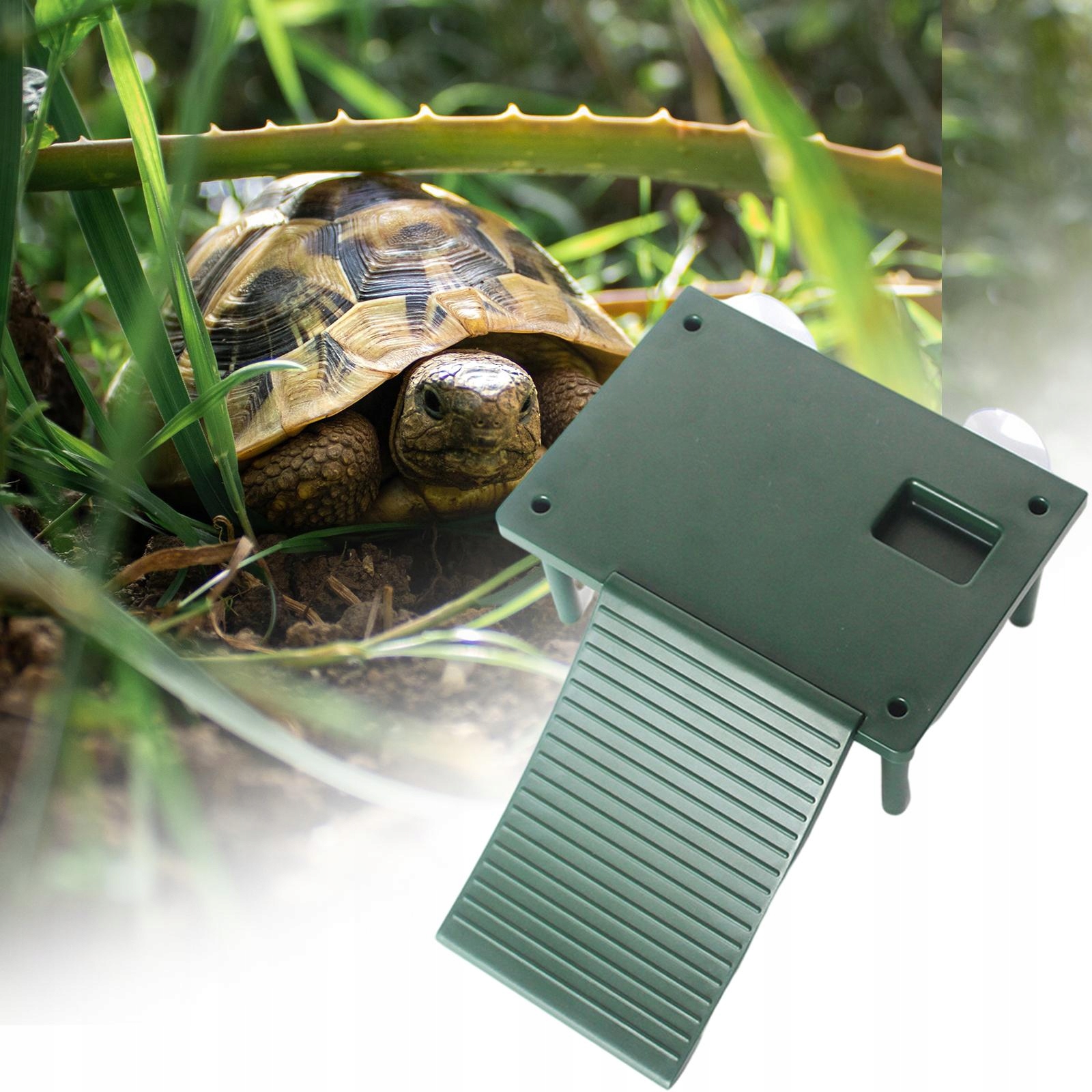 Купание рептилий: чтобы черепахи могли загорать и безопасно выходить из воды, этот резервуар для черепах также позволяет им есть, отдыхать и приземляться.