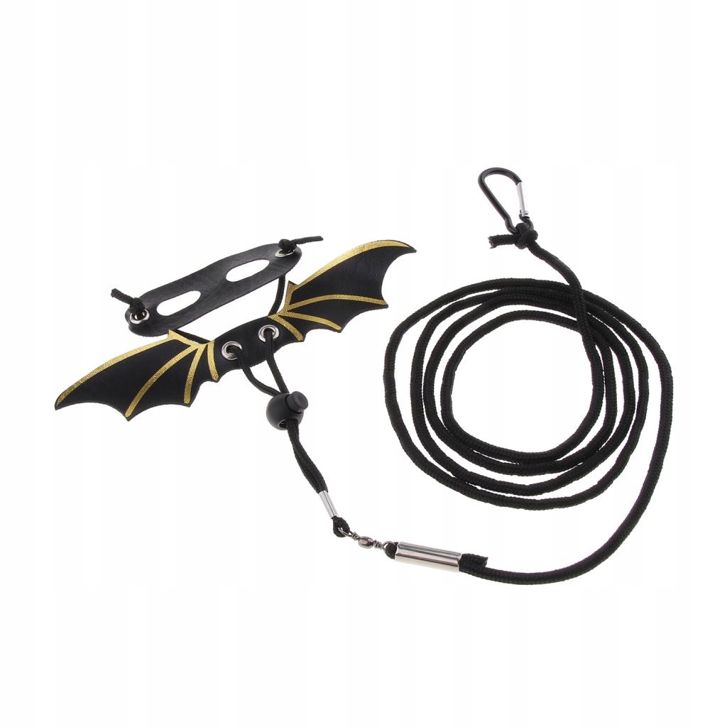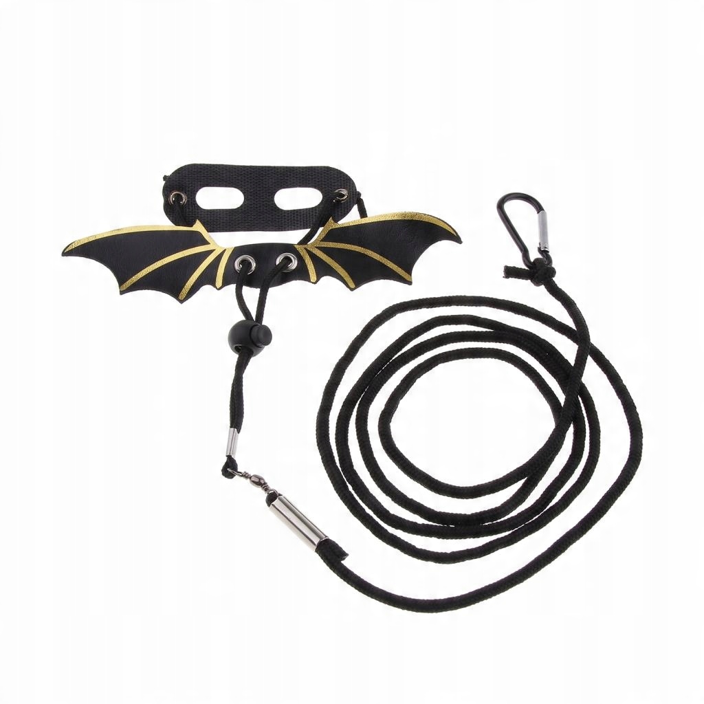 Повод с жгутом для попугаев и птиц в черном + черном + золото-S-S