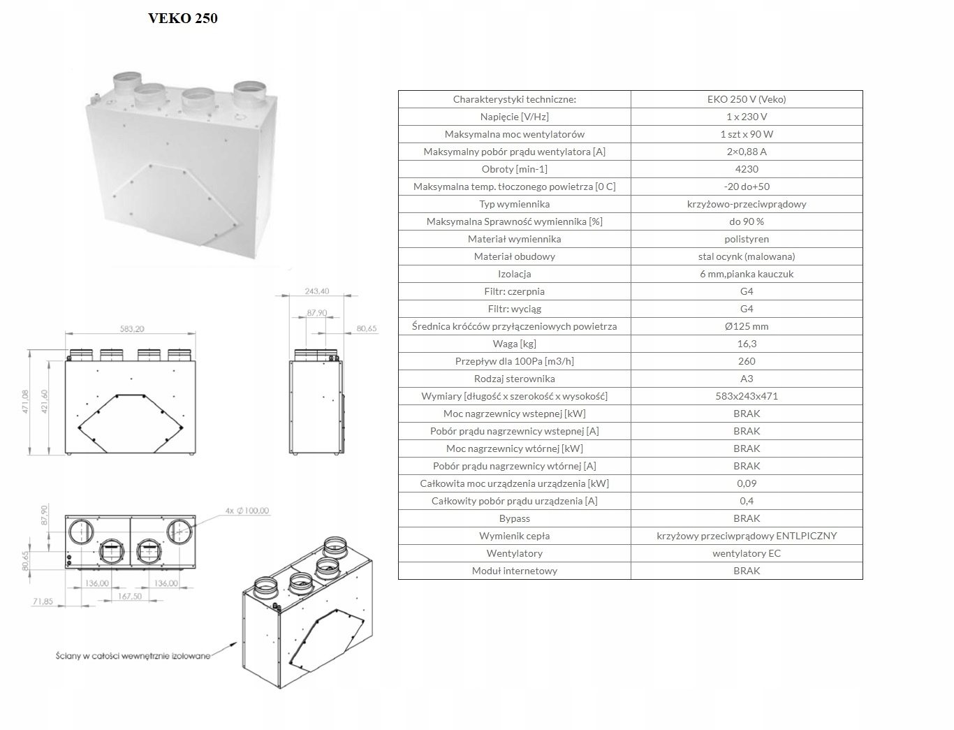 Veko Recuperator 250 B Панель управления рекуперацией h1>