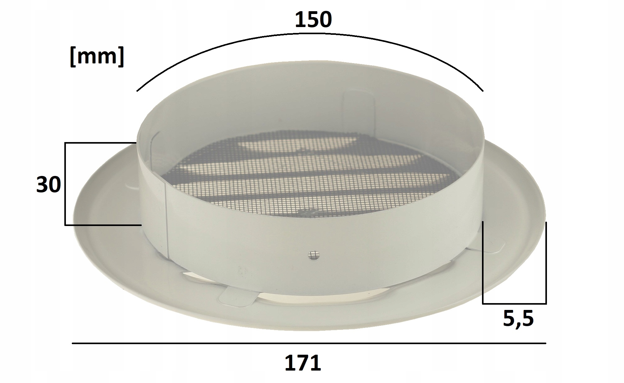 МЕТАЛЛИЧЕСКАЯ ВЕНТИЛЯЦИОННАЯ РЕШЕТКА С ФЛАНЦЕМ, FI 150 ММ, БЕЛАЯ
