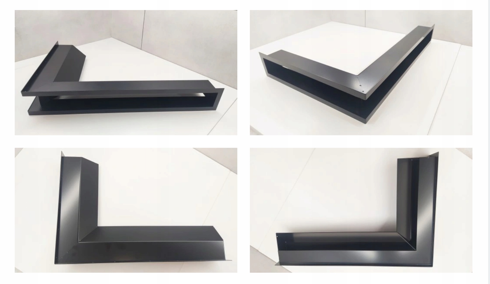Набор из 3 шт угловых решеток каминных 600х400х90 для камина с левым боковым стеклом - черные - 2 шт ВВЕРХ и 1 шт НИЗ