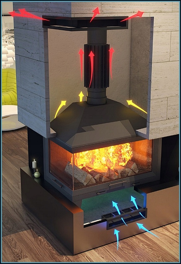 Открытые решетки следует устанавливать над каминной топкой выходом вниз, либо под каминной топкой