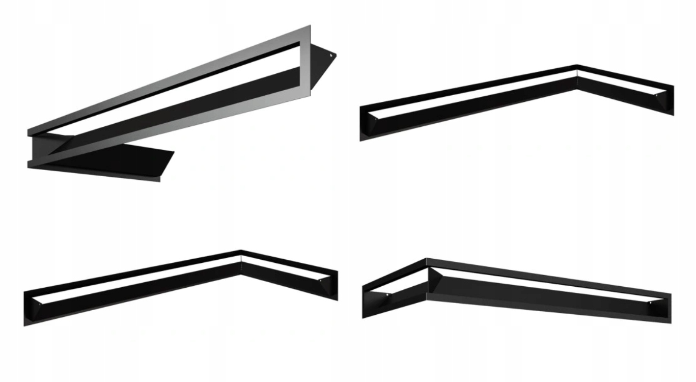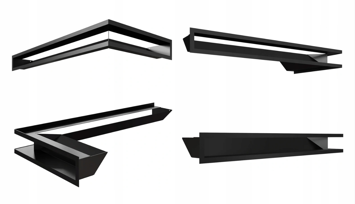 Комплект из 3 шт каминных решеток люфтового типа 45С угловой 800х400х90 для камина с левым боковым стеклом - черный цвет - 2 шт ВВЕРХ и 1 шт НИЗ SF