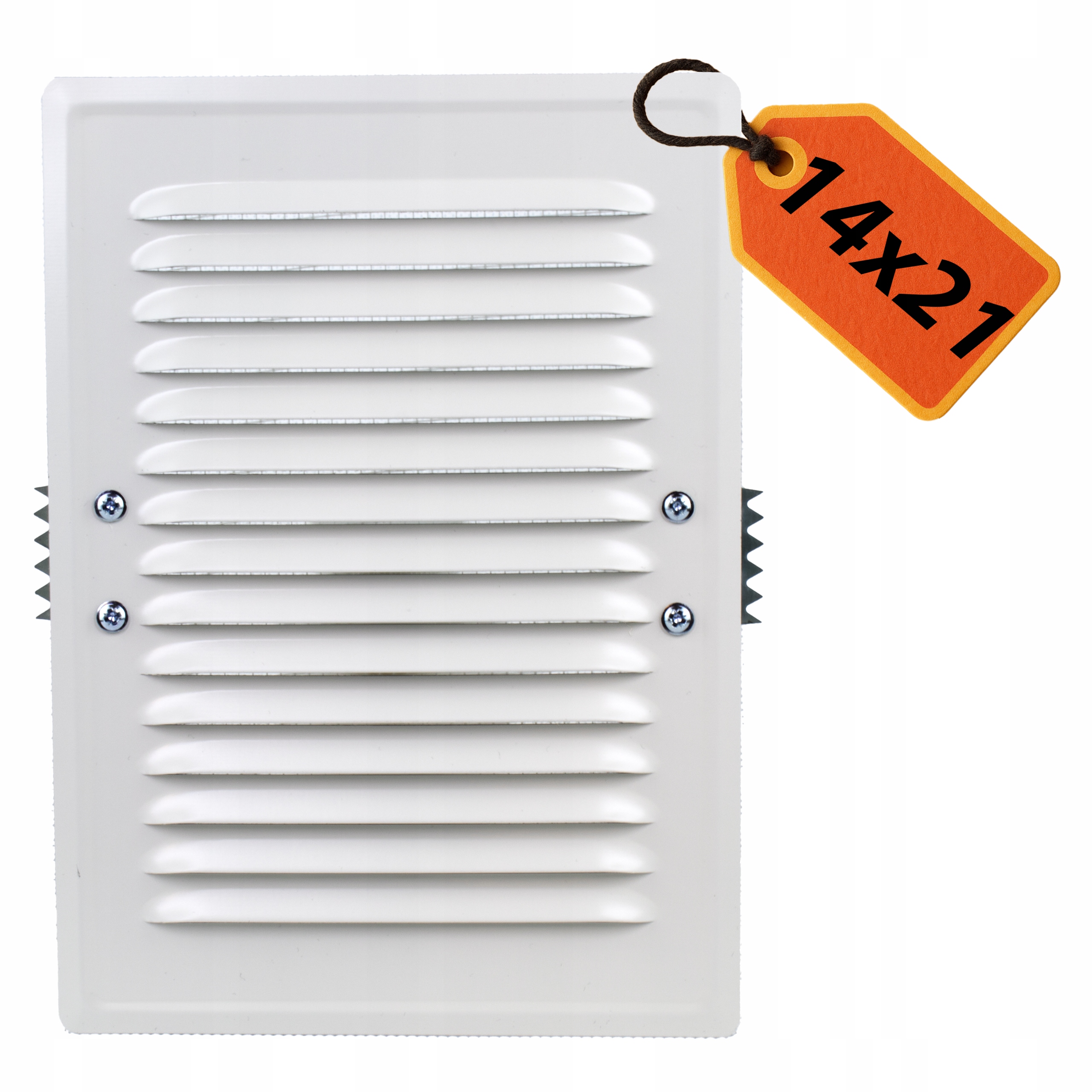РЕШЕТКА МЕТАЛЛИЧНАЯ 14х21, БЕЛАЯ ВЕНТИЛЯЦИОННАЯ С СЕТКОЙ ДЛЯ ДЫМОХОДА + ЗАЩЕЛКИ