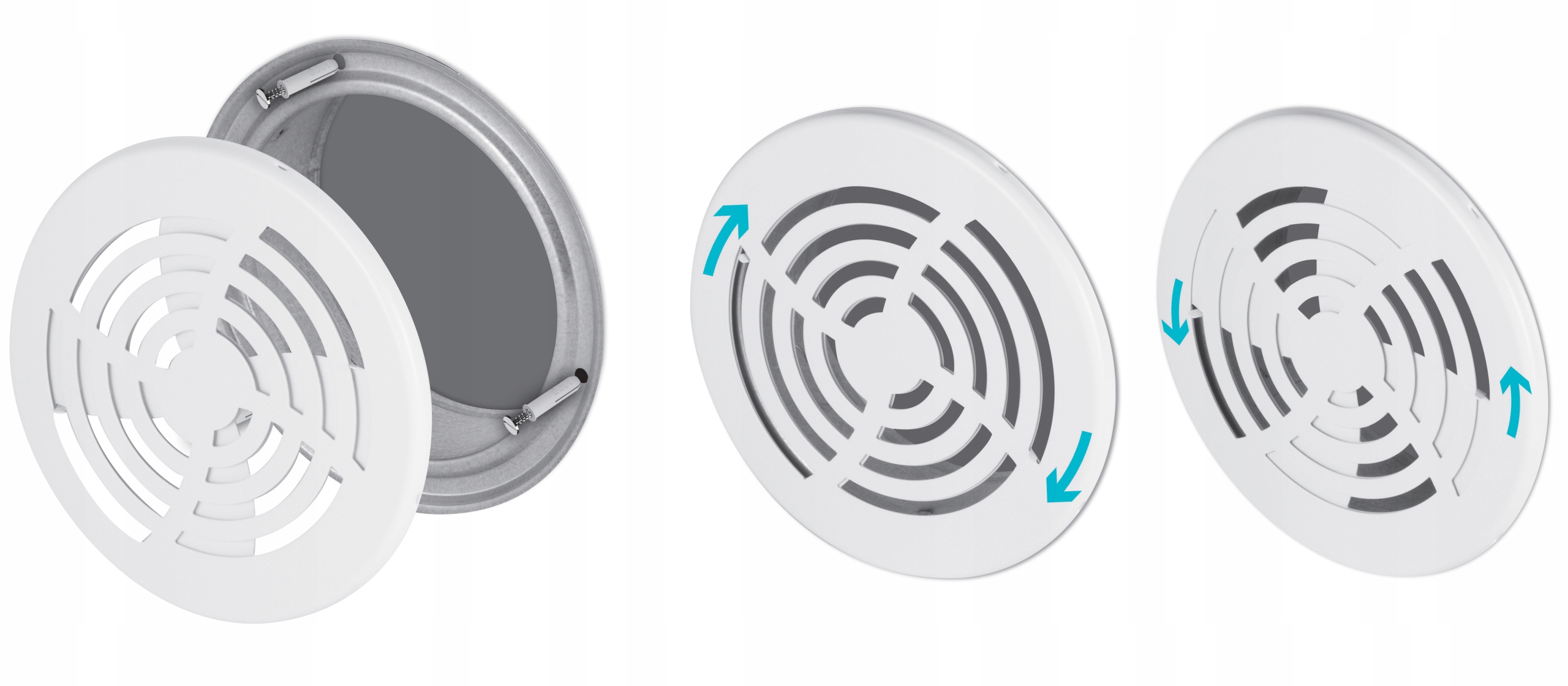 Решетки имеют регулировку потока воздуха с помощью заслонки, закрытой ползунком.