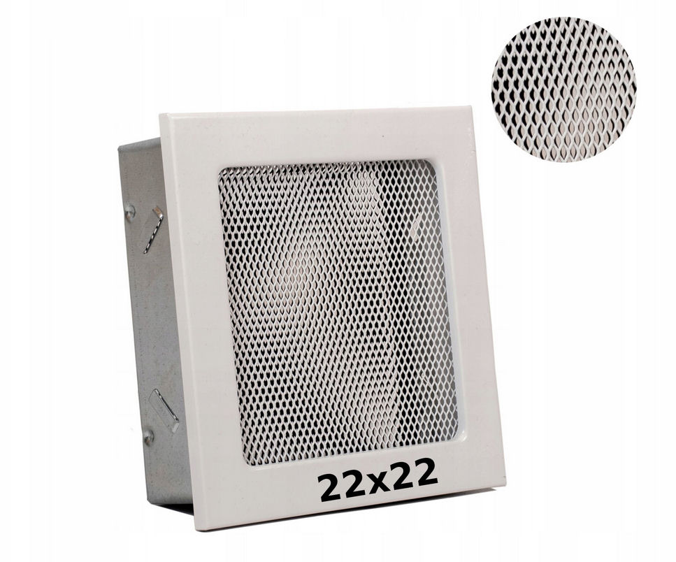 ВЕНТИЛЯЦИОННАЯ РЕШЕТКА ДЛЯ КАМИНА 22х22 БЕЛАЯ С СЕТОЧНОЙ МЕТАЛЛИЧЕСКОЙ КРЫШКОЙ