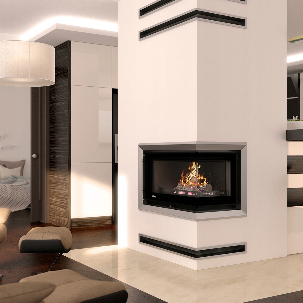Установка открытых угловых каминных решеток