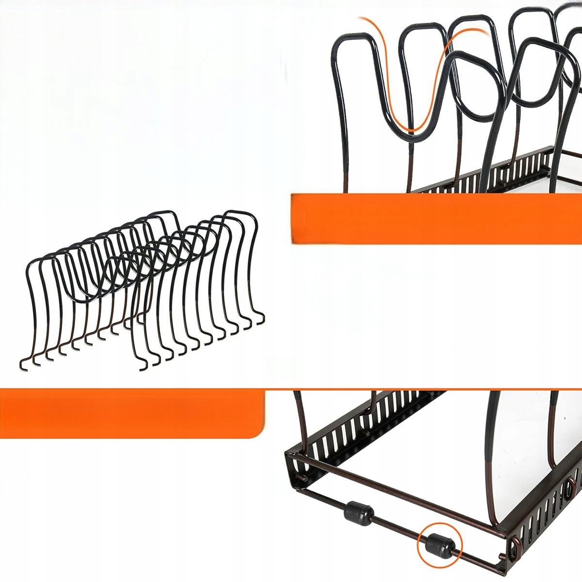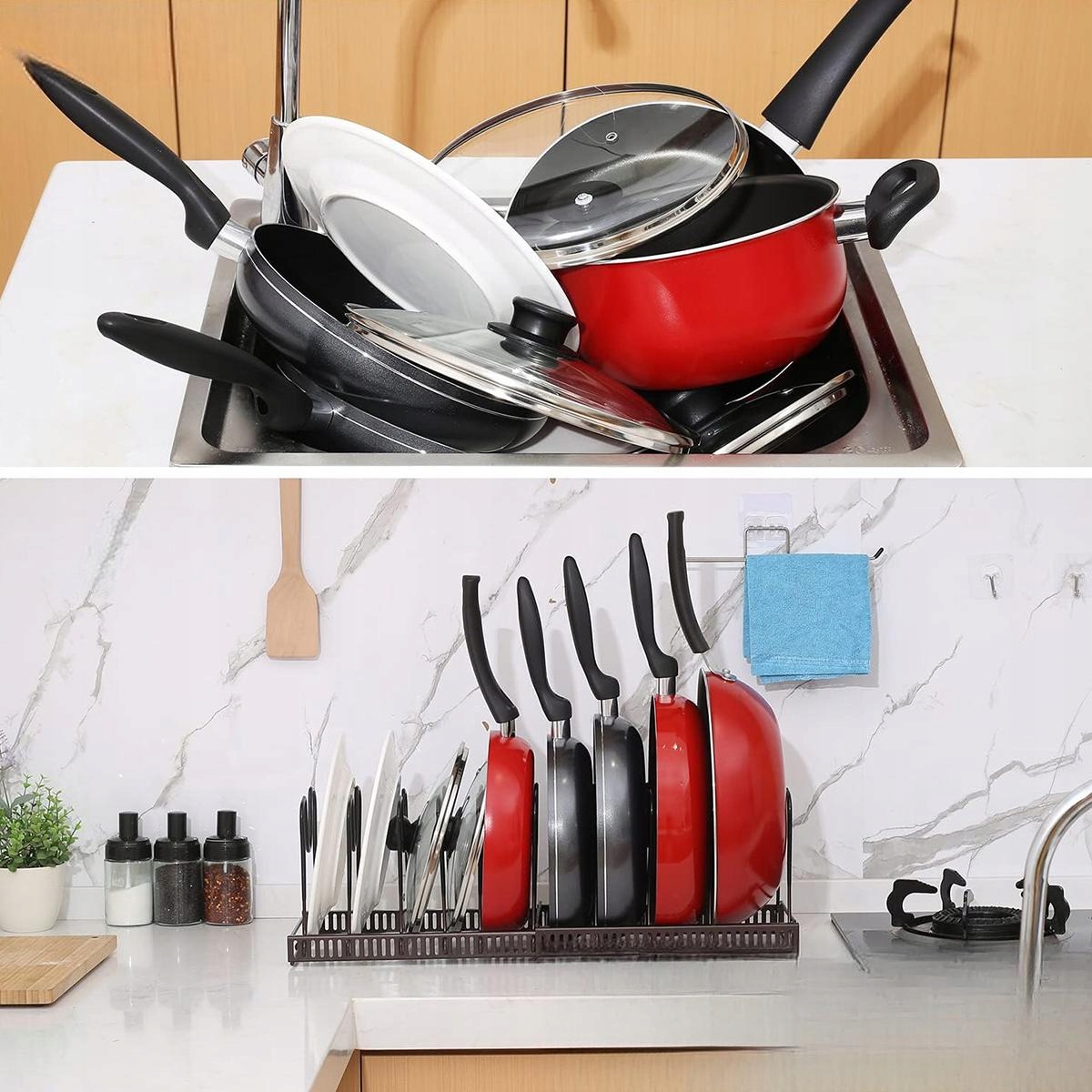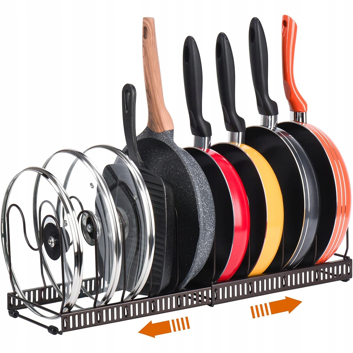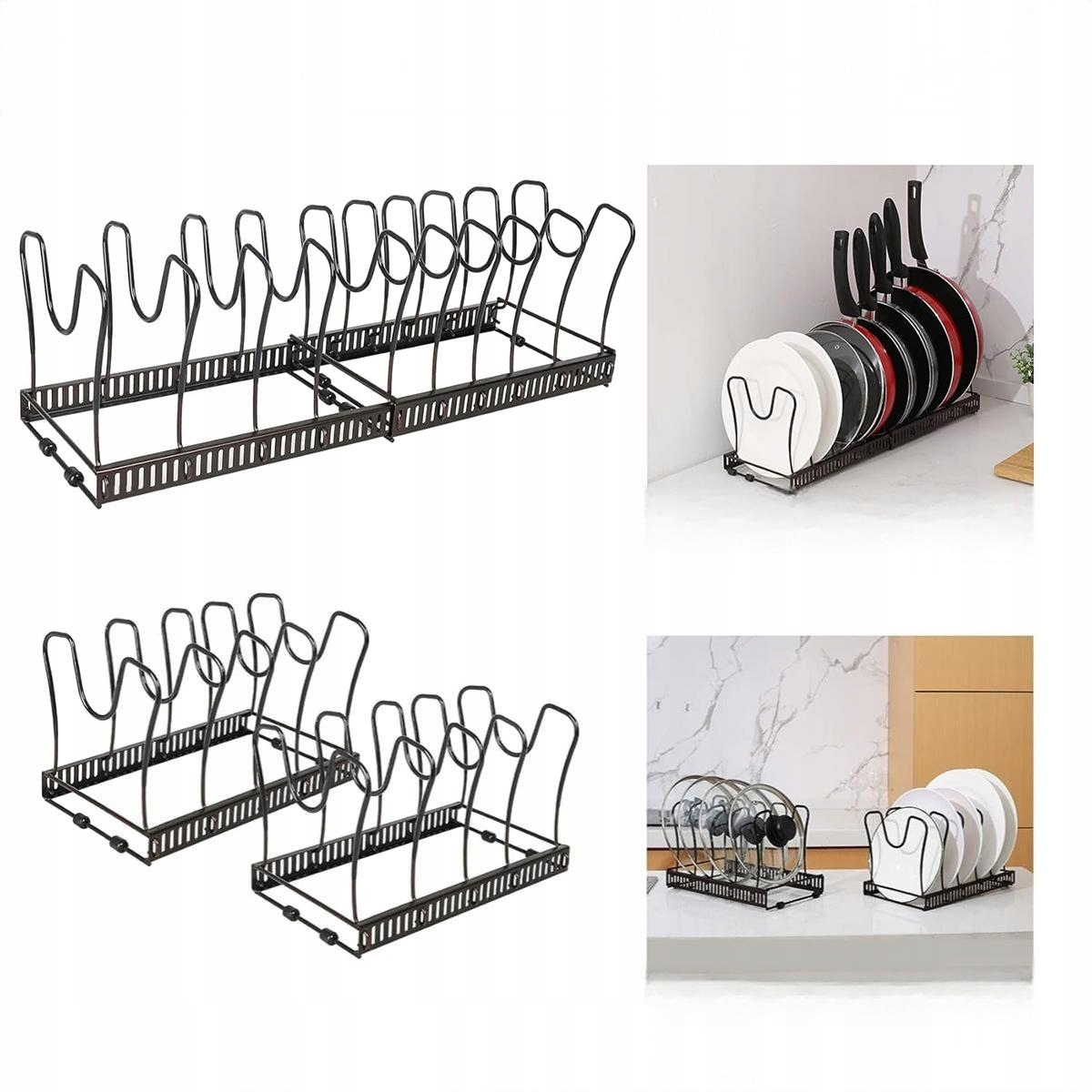 ✨Регулируемая прихватка, отделение для хранения, крышки, кастрюля с 10 отделениями, металлический держатель, кухонное отделение, для крышек, кастрюль, органайзер для кастрюль (черный)✨