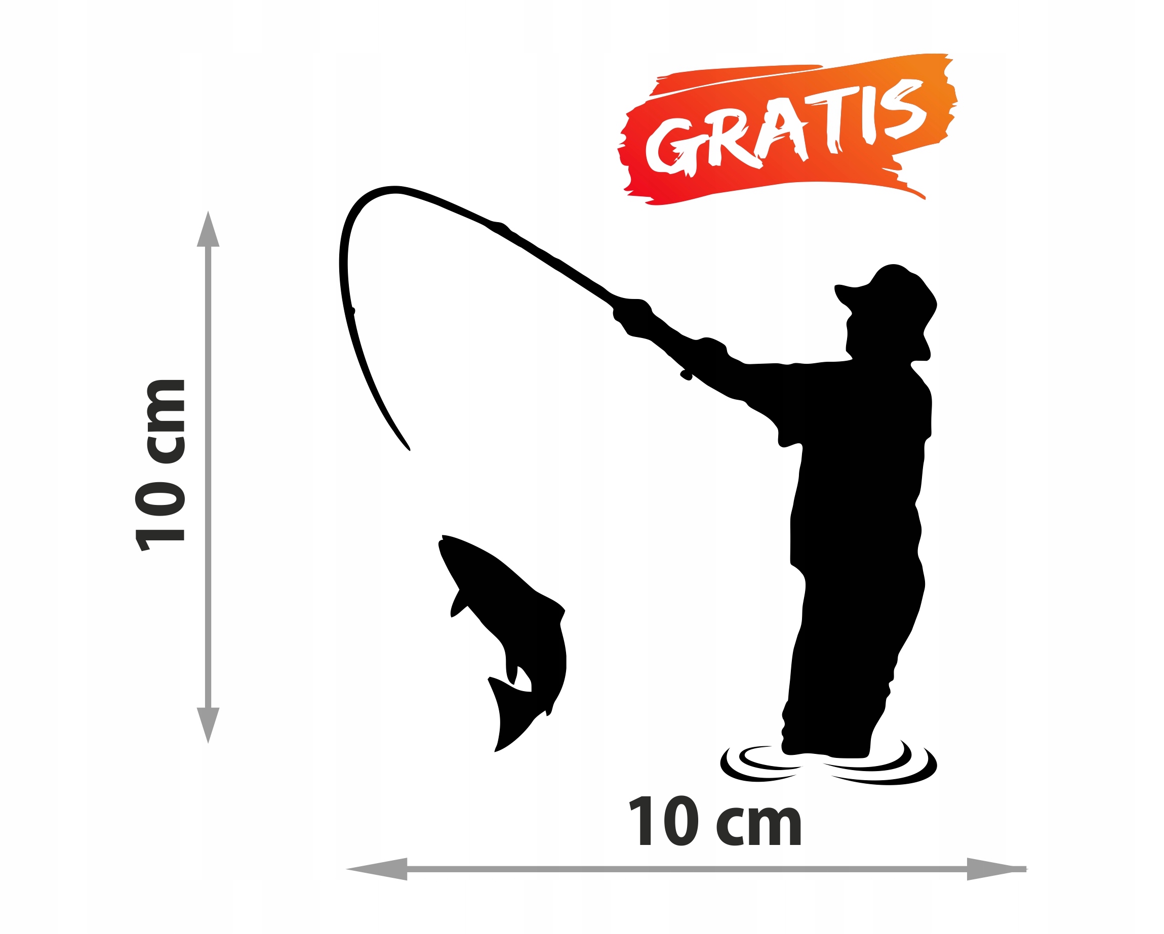 Наклейка размером 10 х 10 см с белым значком рыболова.