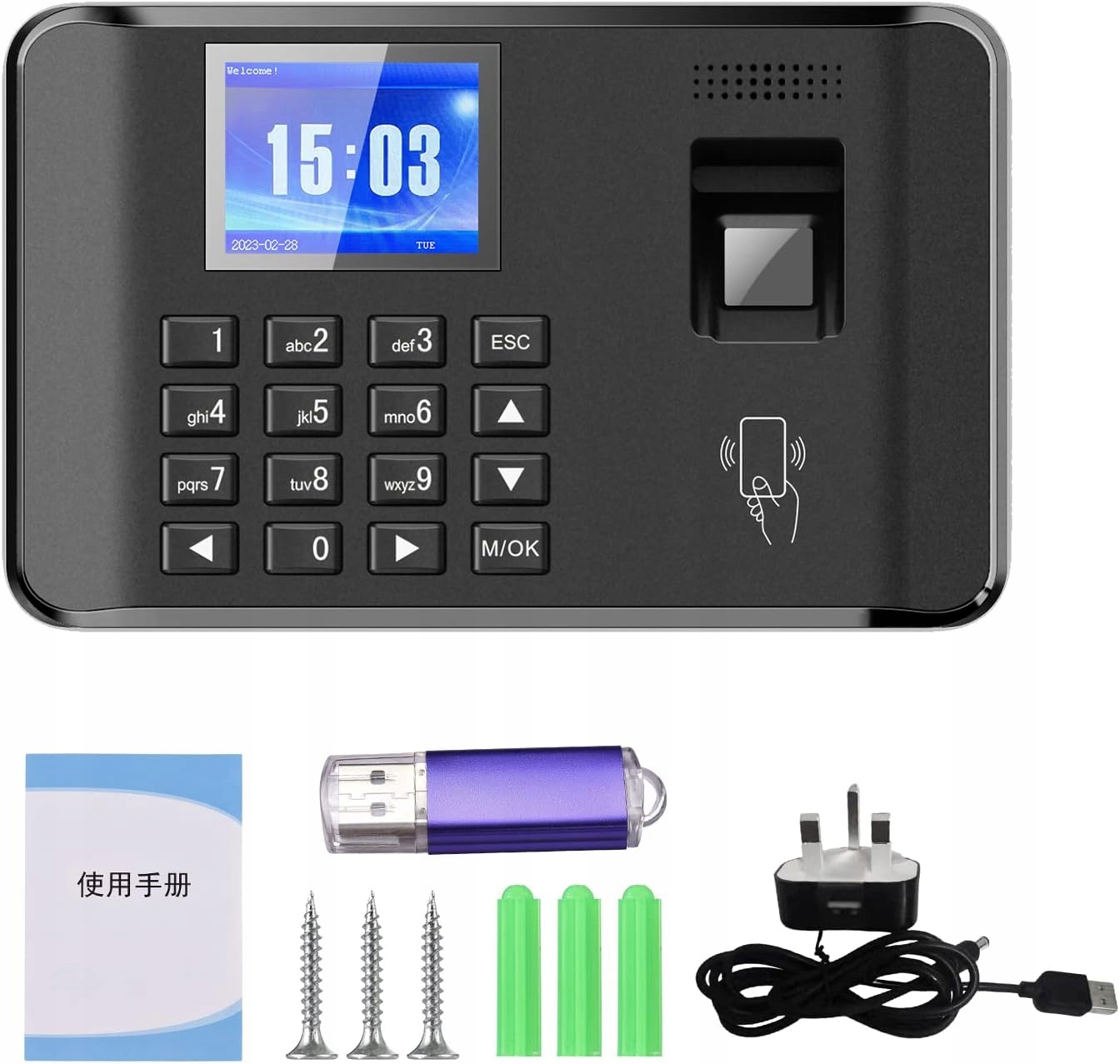 - 【Простое управление】Поддержка U-диска для загрузки записей посещаемости и данных отпечатков пальцев, система автоматически генерирует отчеты, которые можно экспортировать через U-диск или кабель для передачи данных без какого-либо программного обеспечения, а также вы можете поделиться регистрацией информации. на другие устройства через USB-накопитель. Создайте себе экологичный офис без бумажных этикеток и бейджей