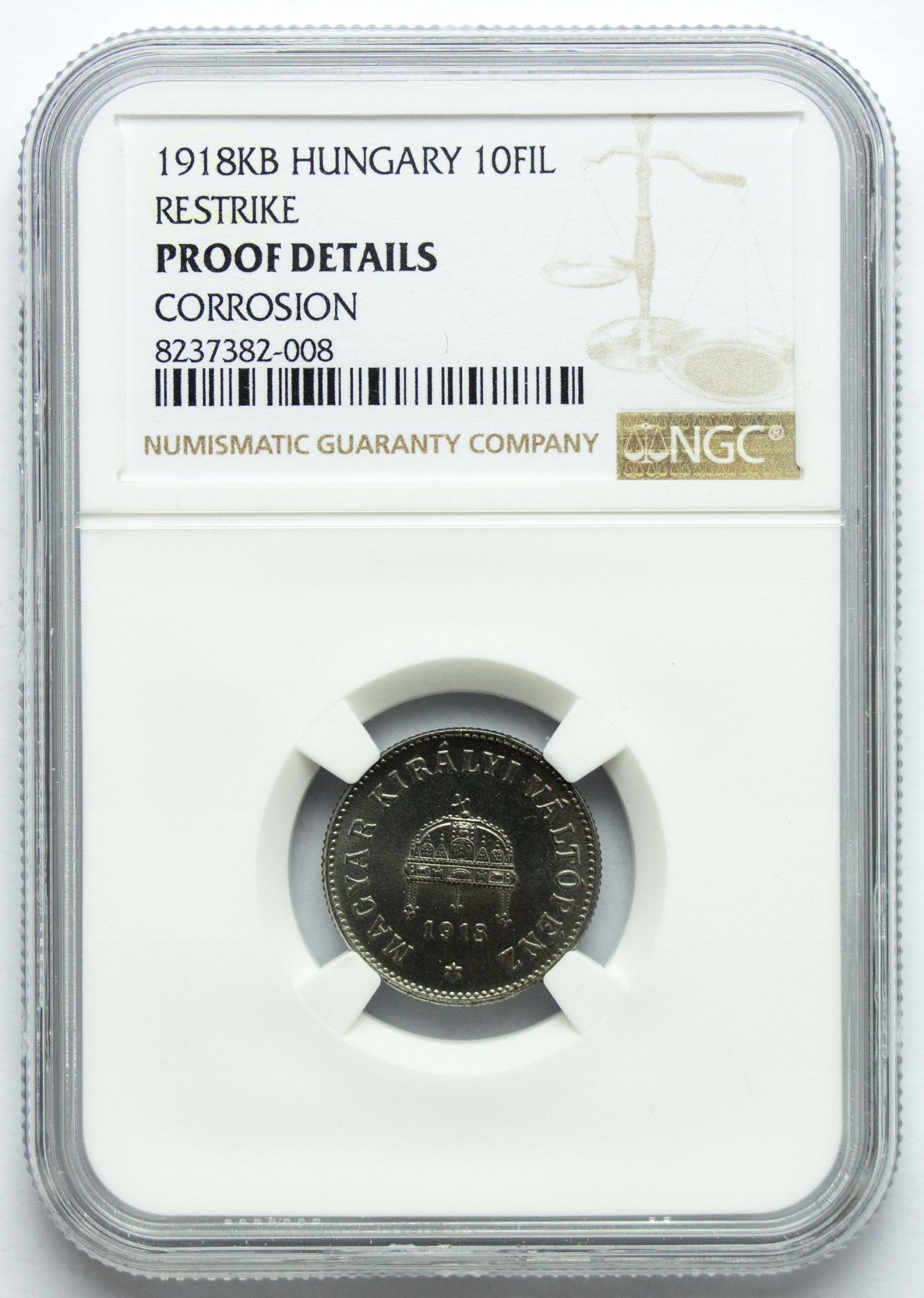 Restrike, Wangary, 10 Filler 1918 KB, Karol I, NGC Доказательство