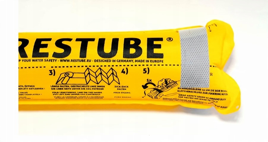Ярко-желтый цвет и большой формат Restube (65 х 13 см) служат эффективным визуальным пособием и значительно повышают вероятность быть замеченным на открытой воде и мимо проходящих лодок.