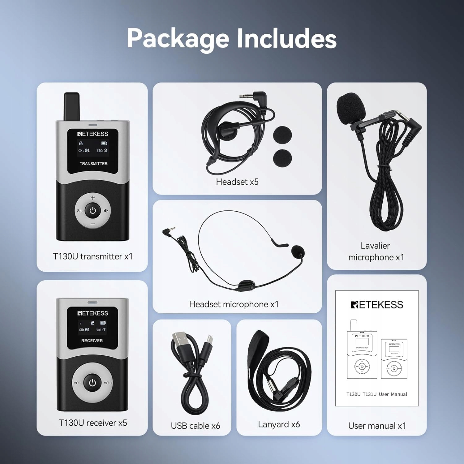 Беспроводные передатчики системы туристической гид можно обычно использовать при зарядке с помощью Bowerbanks, транспортных средств или транспортных средств. Кроме того, корпус зарядки также может быть использован для зарядки T130U.