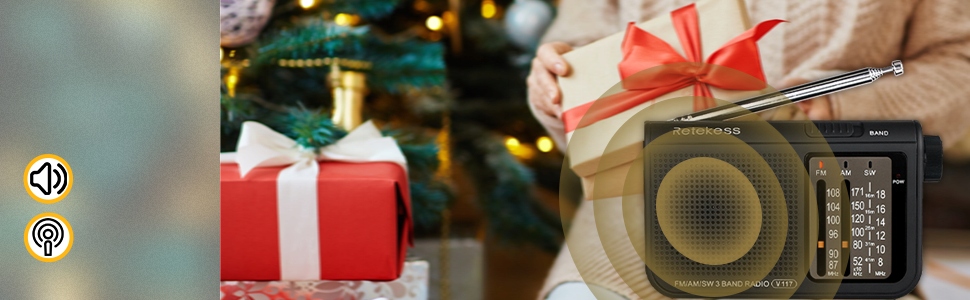 Портативная радиостанция Retekess V117 с аккумулятором проста в использовании и переноске. Это проект для пожилых людей. Если вы хотите подарить V117 своим друзьям на Рождество, вы не ошибетесь.