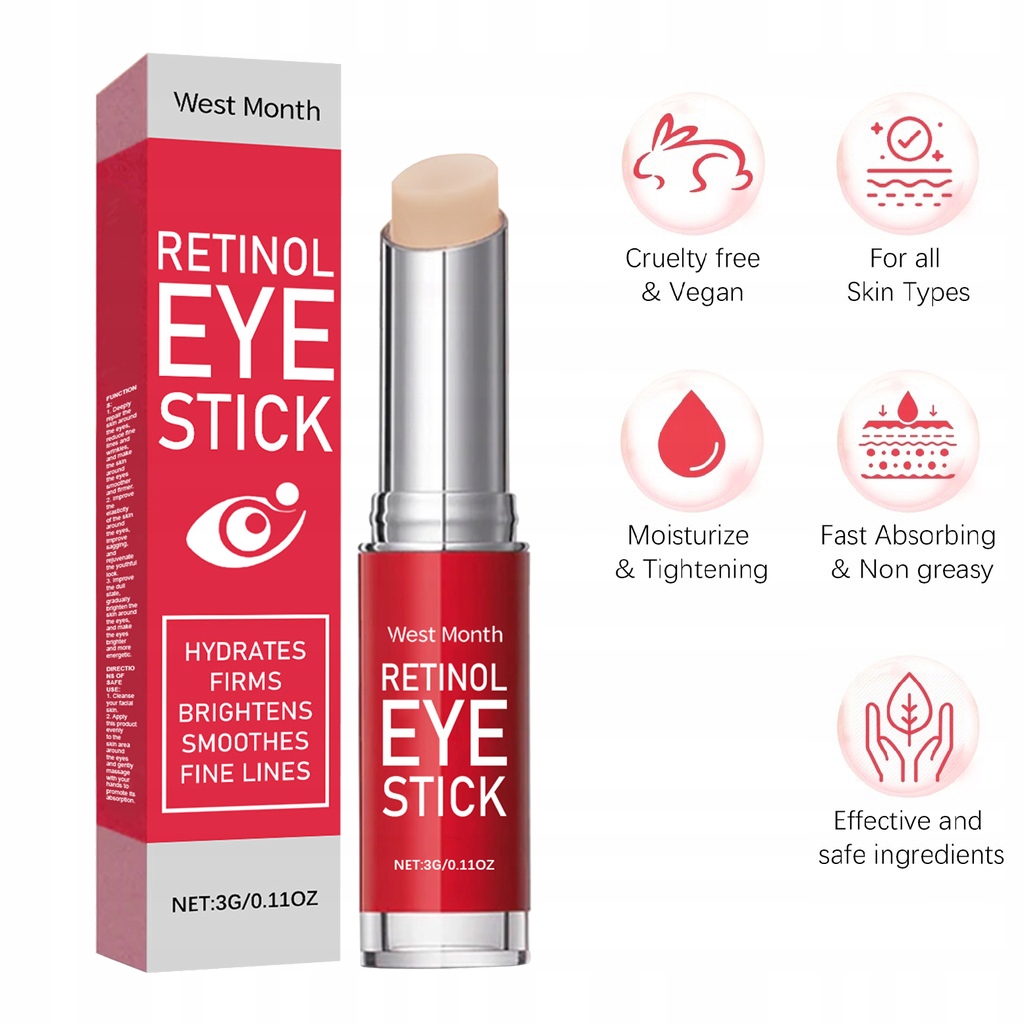 Retinol Eye Stick – идеальное решение всех проблем с кожей под глазами! Эти инновационные патчи для глаз предназначены для борьбы с тонкими линиями, морщинами, темными кругами и отечностью вокруг чувствительной области глаз, делая ваш цвет лица молодым и сияющим. Содержит сильный антивозрастной ингредиент ретинол, который стимулирует выработку коллагена, повышает эластичность и упругость кожи. Кроме того, он содержит смесь увлажняющих и питательных ингредиентов, таких как гиалуроновая кислота и витамин Е, которые вместе увлажняют и оживляют вашу кожу.