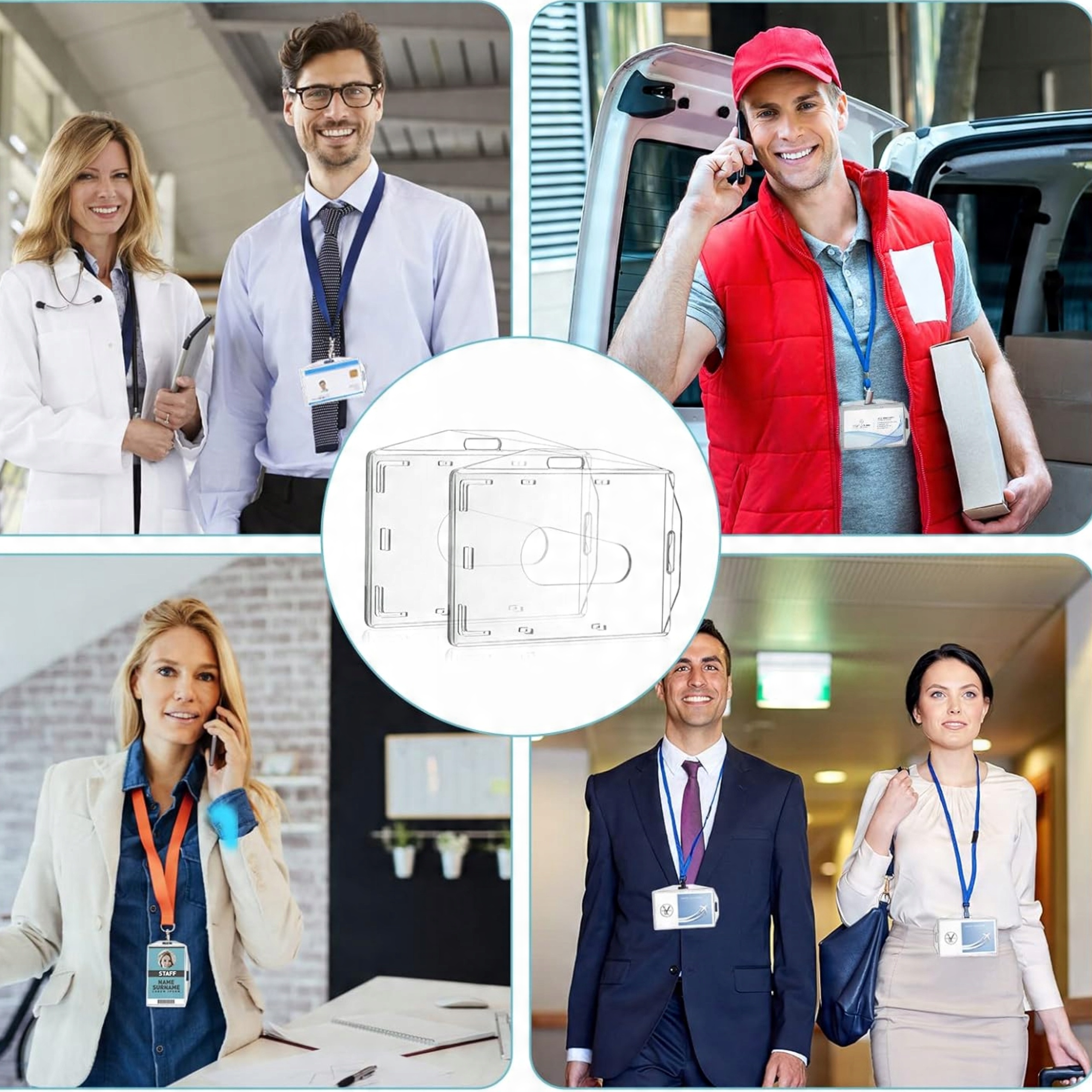 - Держатель для бейджа изготовлен из поликарбоната, который отличается высокой ударопрочностью, прочностью и долговечностью. Благодаря превосходному материалу наш держатель бейджа более прочный и устойчивый к повреждениям.