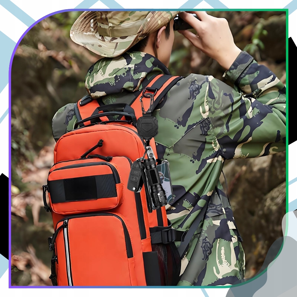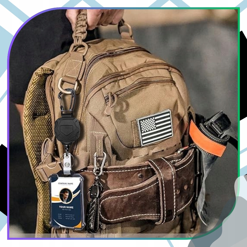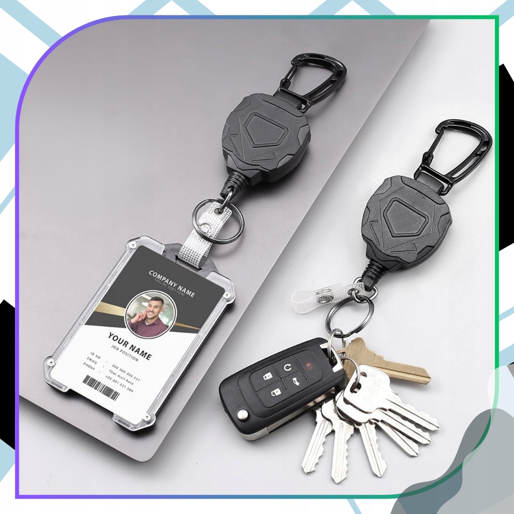 ✅ Самым большим преимуществом является стальной трос длиной 80 см, устойчивый к разрыву и автоматически убирающийся после использования. Благодаря этому вы получаете быстрый и удобный доступ к ключам, магнитным картам, бейджам и мелким инструментам без риска их потери. Втягивающий механизм работает плавно, а вращающаяся на 360° ручка обеспечивает полную свободу движений.