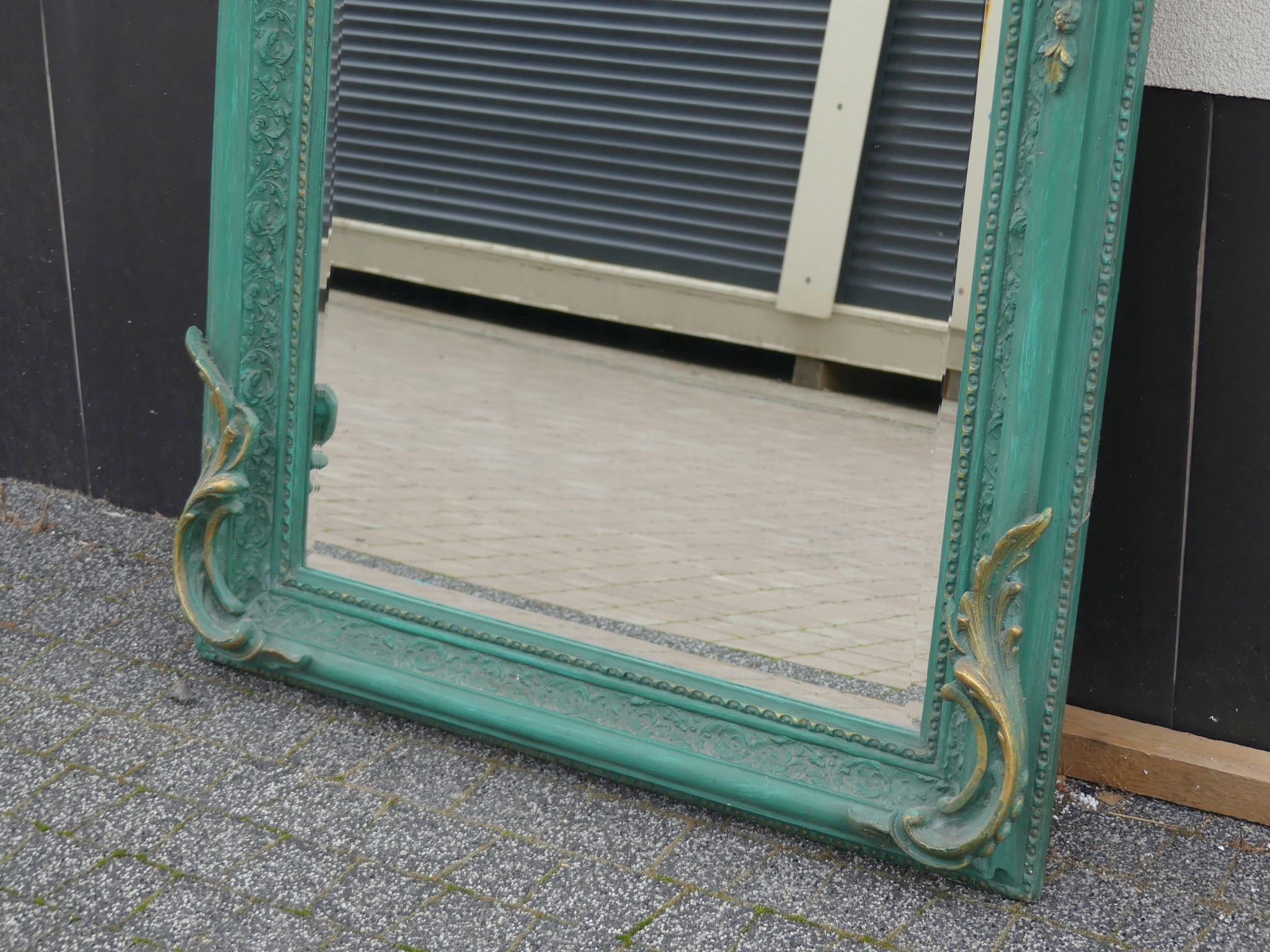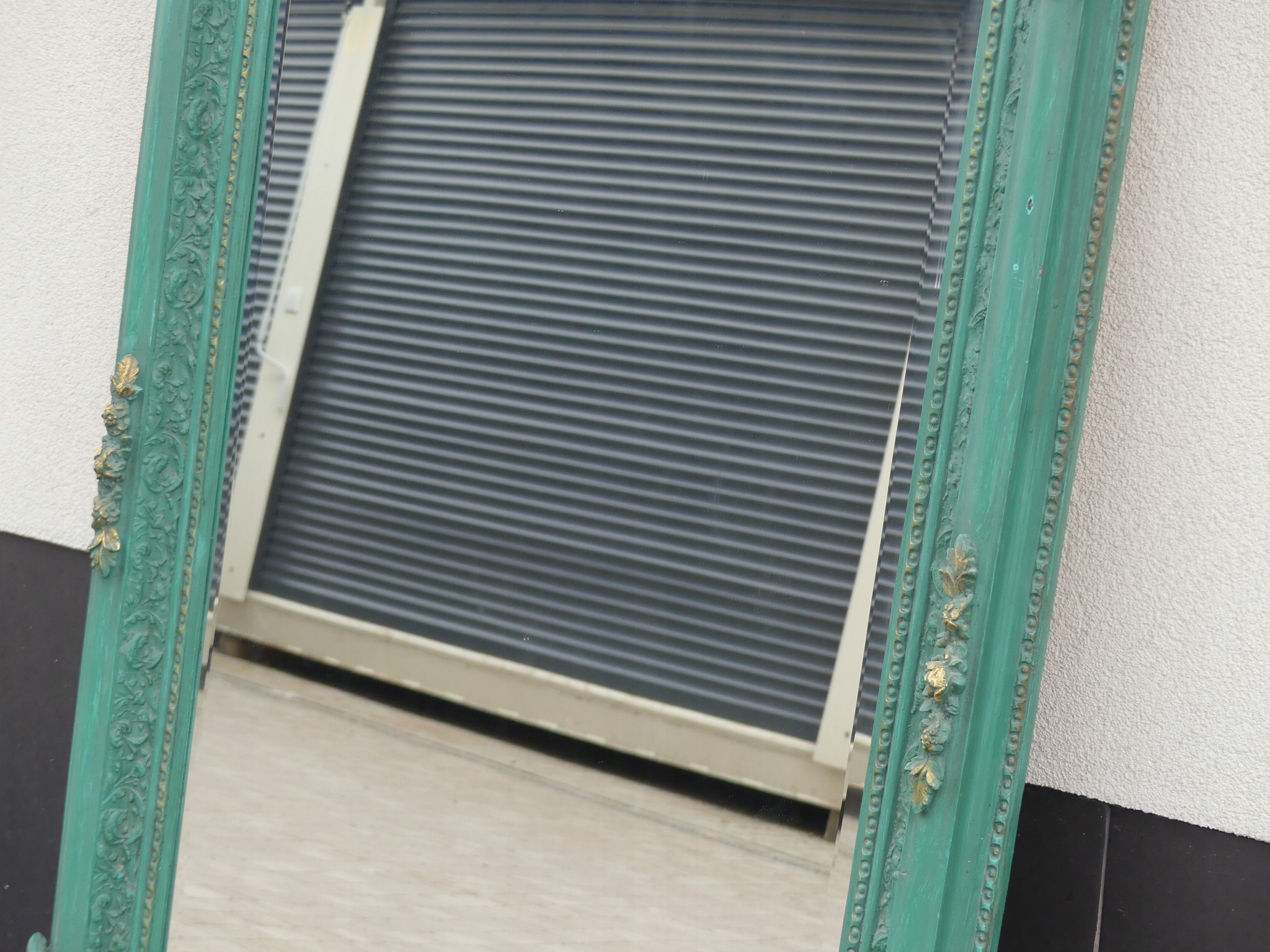Ретро -зеркало в зеленом и золотом раме из большой дерева