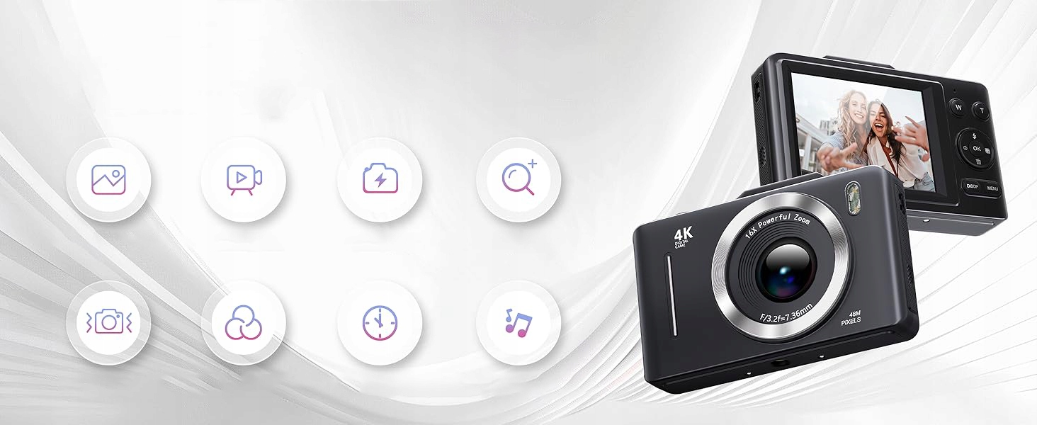 nsion. Цифровая камера использует новейший конвертер изображений CMOS в стабилизации 2024 и 5 осевых и 48 МП фотографий. В макро -режиме вы можете четко сфотографировать цветы, растения или небольших насекомых. Нет трудных настроек, и дети и подростки могут легко справиться с этим, что очень подходит для развития их интереса к фотографии и регистрации счастливых моментов на вечеринках, праздничных поездках и всех небольших приключениях