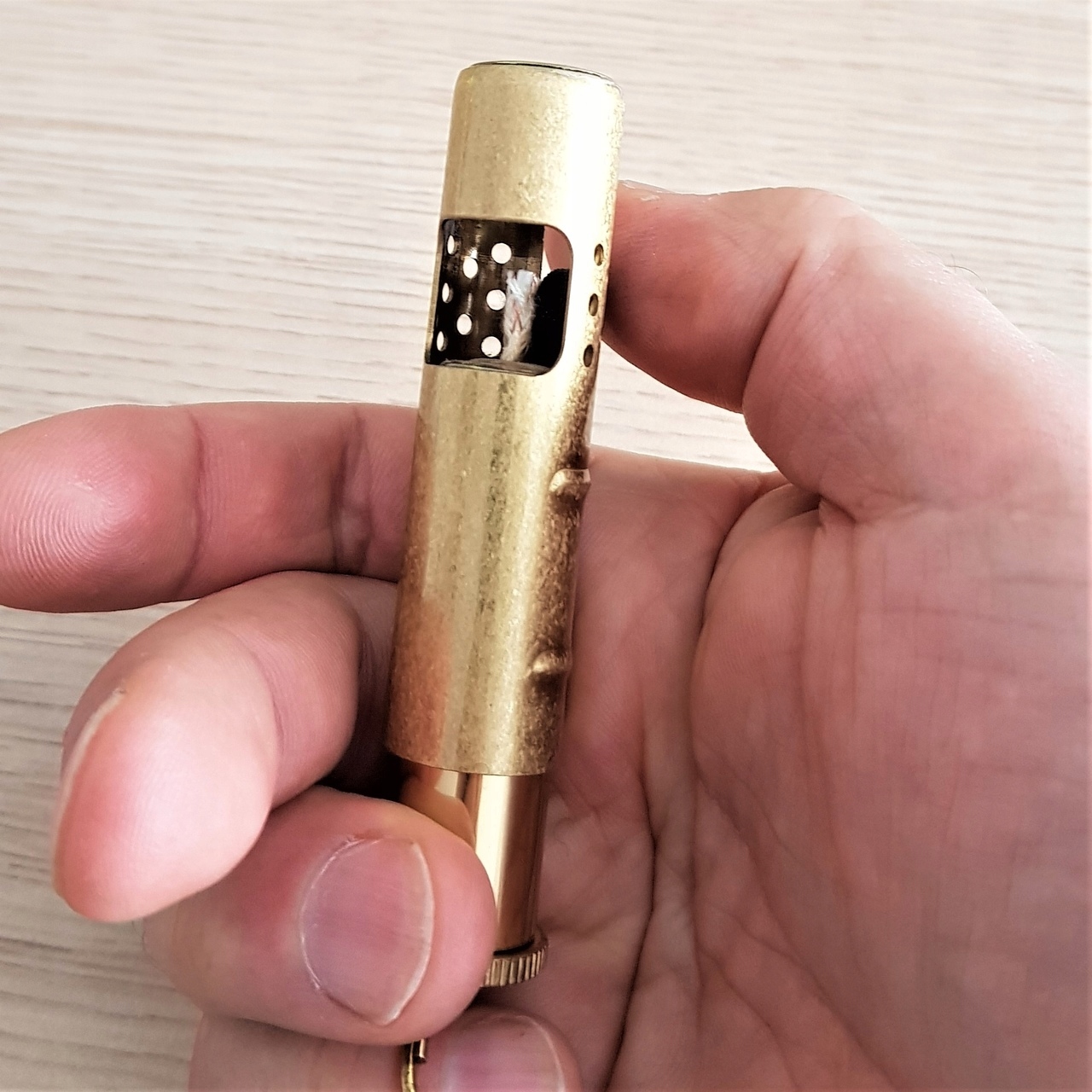 Зажигалки этого типа обычно изготавливались из гильз, которые были распространены во время мировой войны. Я и вскоре после этого. Доступны подробности.